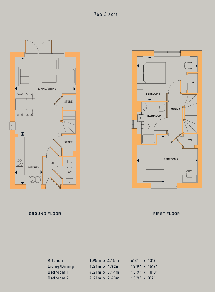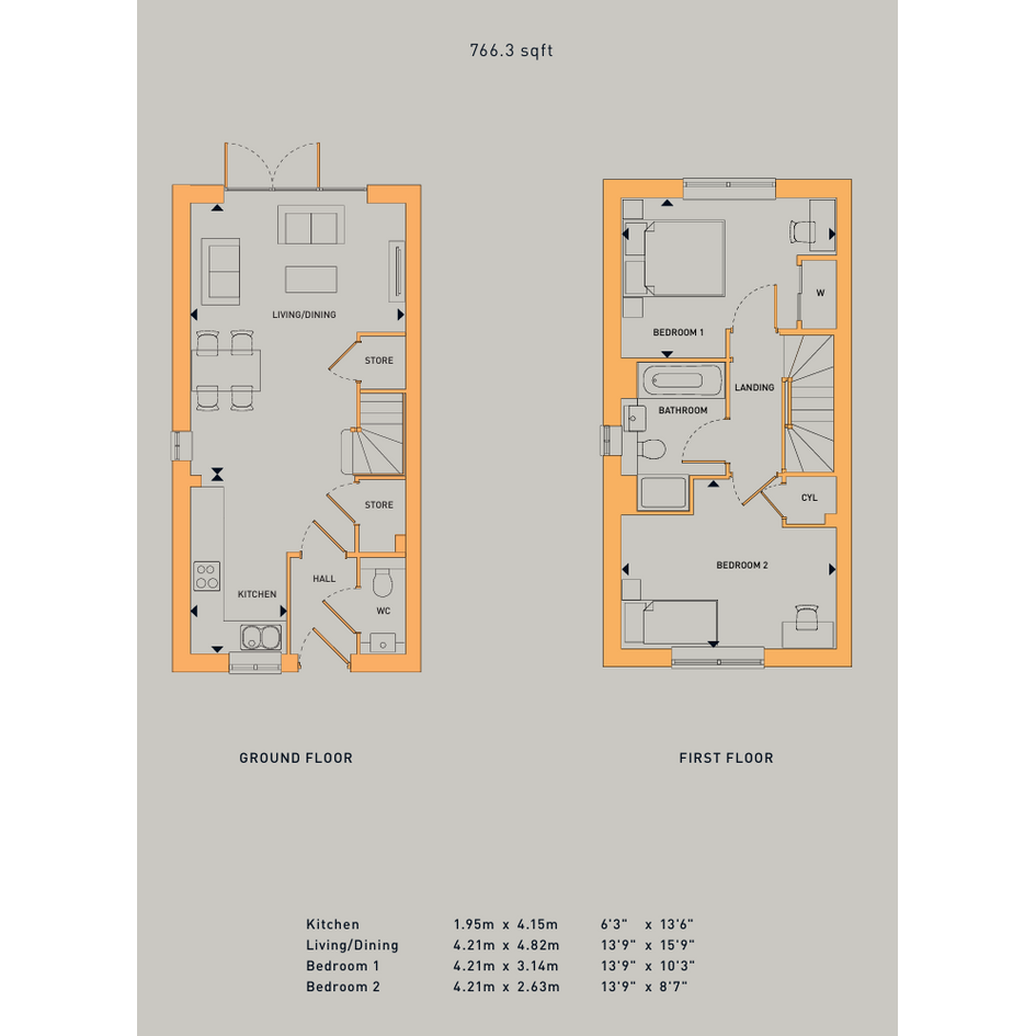 Modern two bedroom home with plenty of storage. Downstairs is an open plan living area with patio doors to the garden and WC. Upstairs you'll find a double bedroom, single bedroom and bathroom.