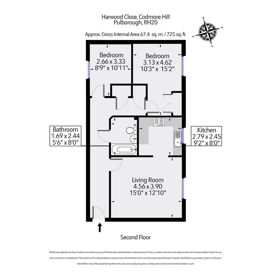 We welcome to the market this well presented two bedroom top floor flat in the village of Pulborough. Leading Inside you will find a large entrance hallway leading into the living room/ kitchen, family bathroom and both bedrooms. Within the hallway there is two build in storage cupboards.