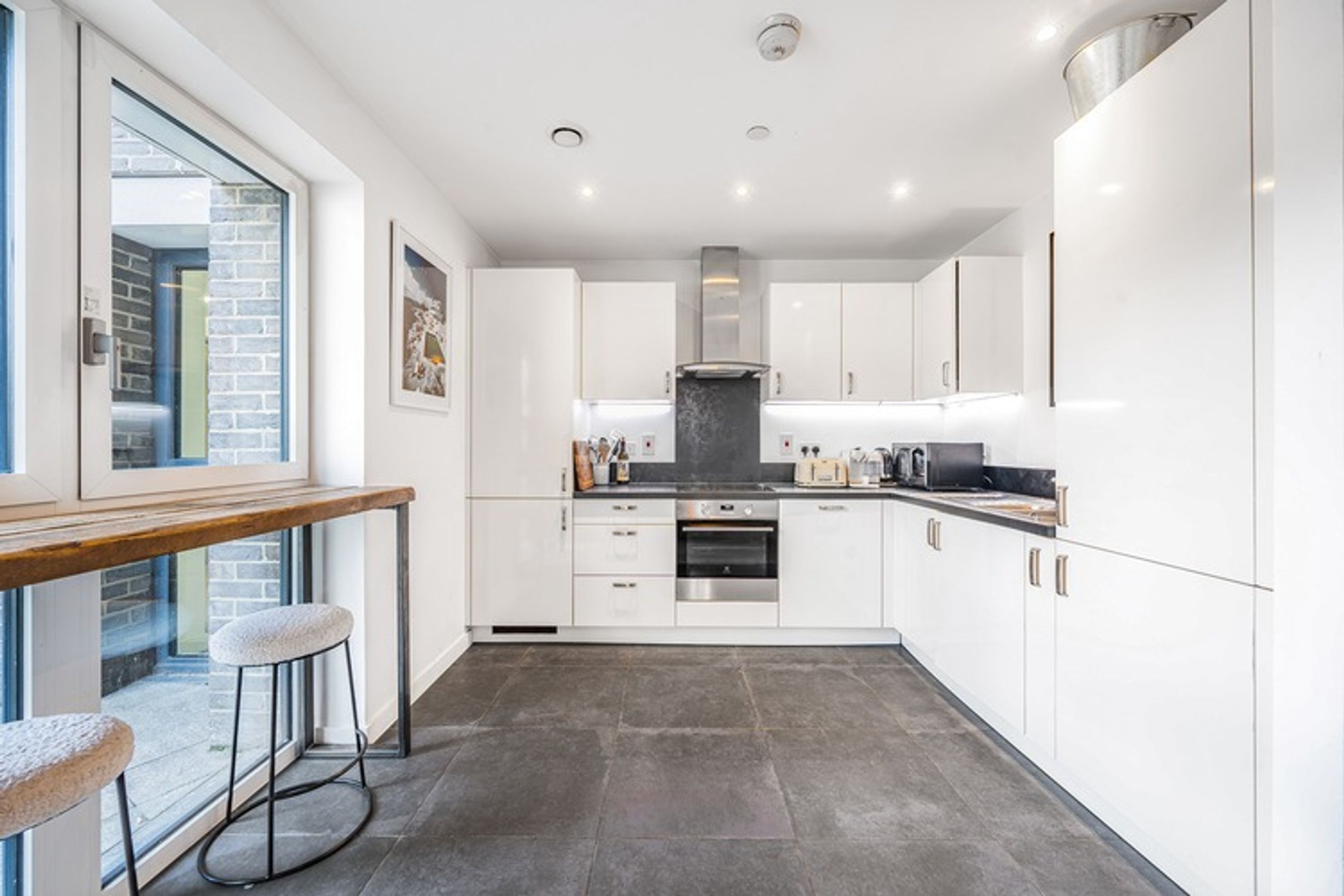 The flat is on the ground floor of a stunningly built structure in Whitechapel, with building gym access.