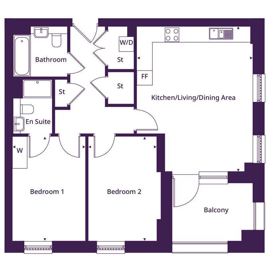 The bedroom has a floor to ceiling window and space for a dressing table or desk. The bathroom, storage cupboards and utility cupboard complete this home.