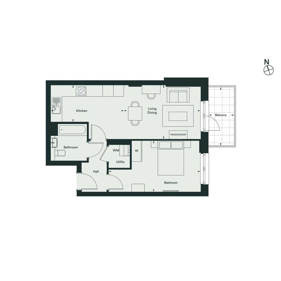 These Enfield Shared Ownership properties feature sleek design elements ensuring comfort and practicality. Each flat comes with Amtico flooring in the living room, hallway and kitchen, wool-mix carpets in the bedrooms, and ceramic tiles on the floor and walls in the bathroom. Kitchens include integrated oven, hob and extractor hood, microwave, fridge/freezer, and dishwasher. Washing machines are freestanding and located in the utility cupboard.