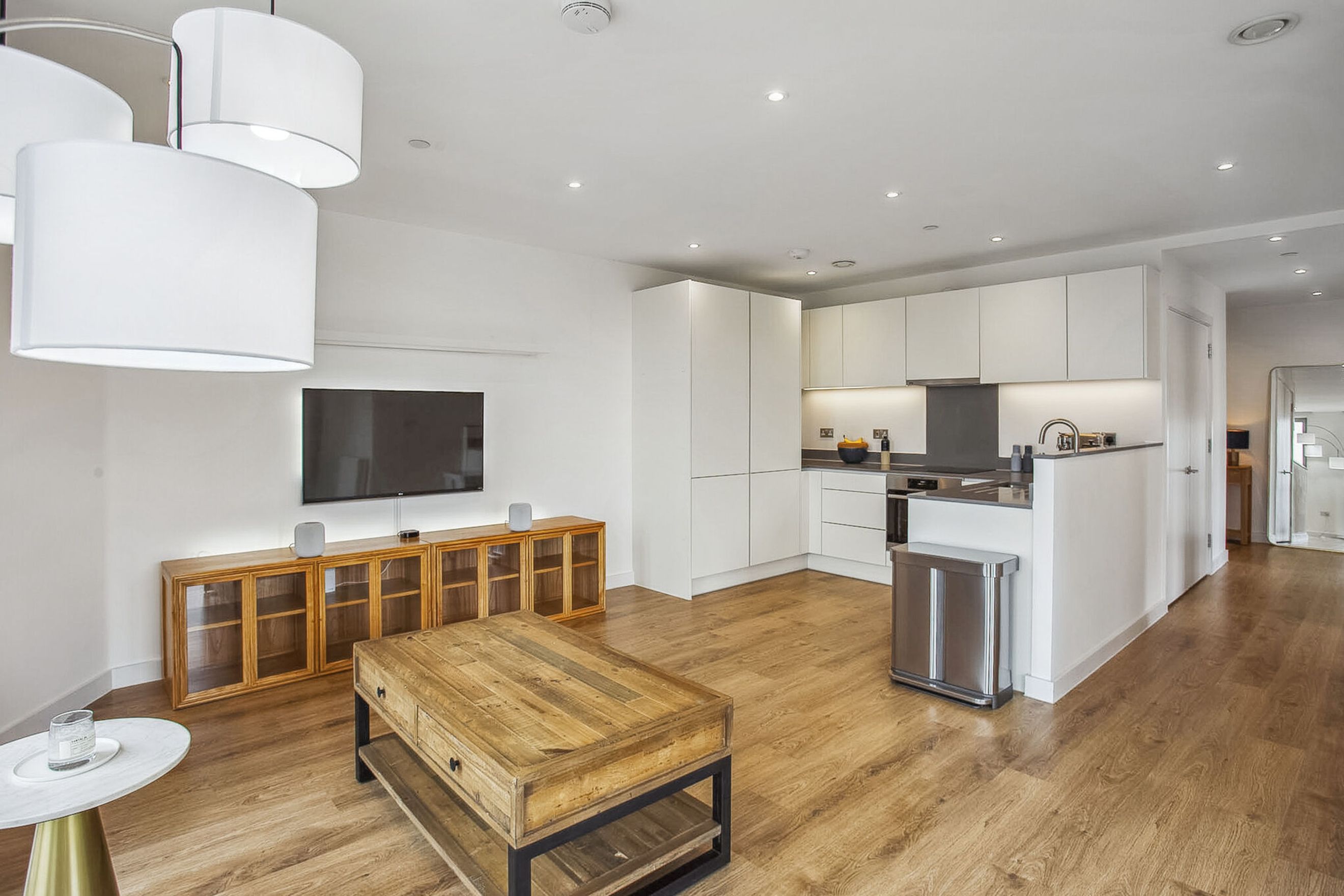 We are delighted to market this stunning two bedroom apartment. You are welcomed into a large hallway, benefiting from two storage cupboards, allowing plenty of space for coats and shoes. The living room and kitchen area is open plan and modern, providing ample space for a dining area. The room is large and bright, thanks to the doors leadingto the large south facing balcony which offers stunning views of the river and as well as the Royal Victoria Dock to the east, Greenwich park to the south, and the O2 and Canary Wharf to the west. The kitchen is a good size with many storage cupboards, also providing an integrated oven, hob,extractor fan, fridge freezer, and dishwasher. The master bedroom is a generous size, has a large fitted wardrobe, and also benefits from a beautiful, modern en-suite with walk in shower. The second bedroom is also a lovely size, perfect for another double bedroom or home office. Finally there is a modern bathroom with floor to ceiling tiles and a shower over bath.The property includes a washer/dryer, a smart heating system by Tado, and secure mesh WiFi throughout.