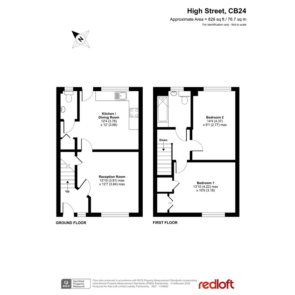 Ground Floor: Entrance Hall leading to the living room or upstairs to the first floor. Then through the living room to the kitchen/dining room, WC/cloakroom and door to the rear garden with wooden canopy, large timber shed and gate leading to two parking spaces.