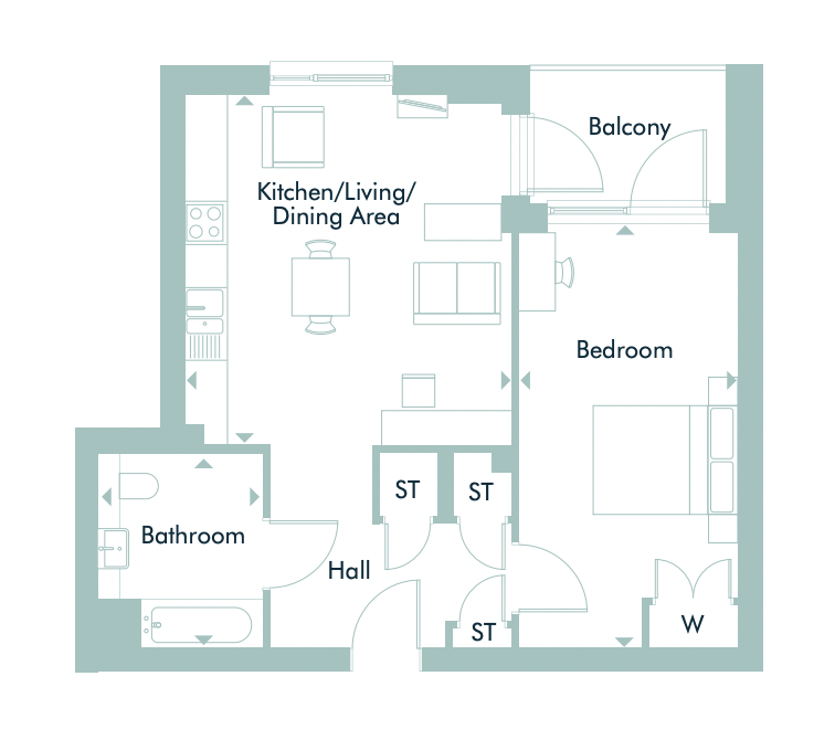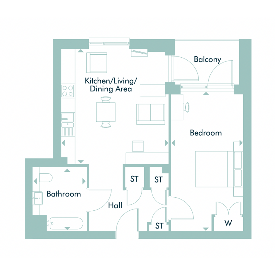 Originally built as an accessible apartment, Flat 72 is larger than average with wide hallways and large bedroom and bathrooms. It includes a double bedroom with a built in fitted wardrobe.