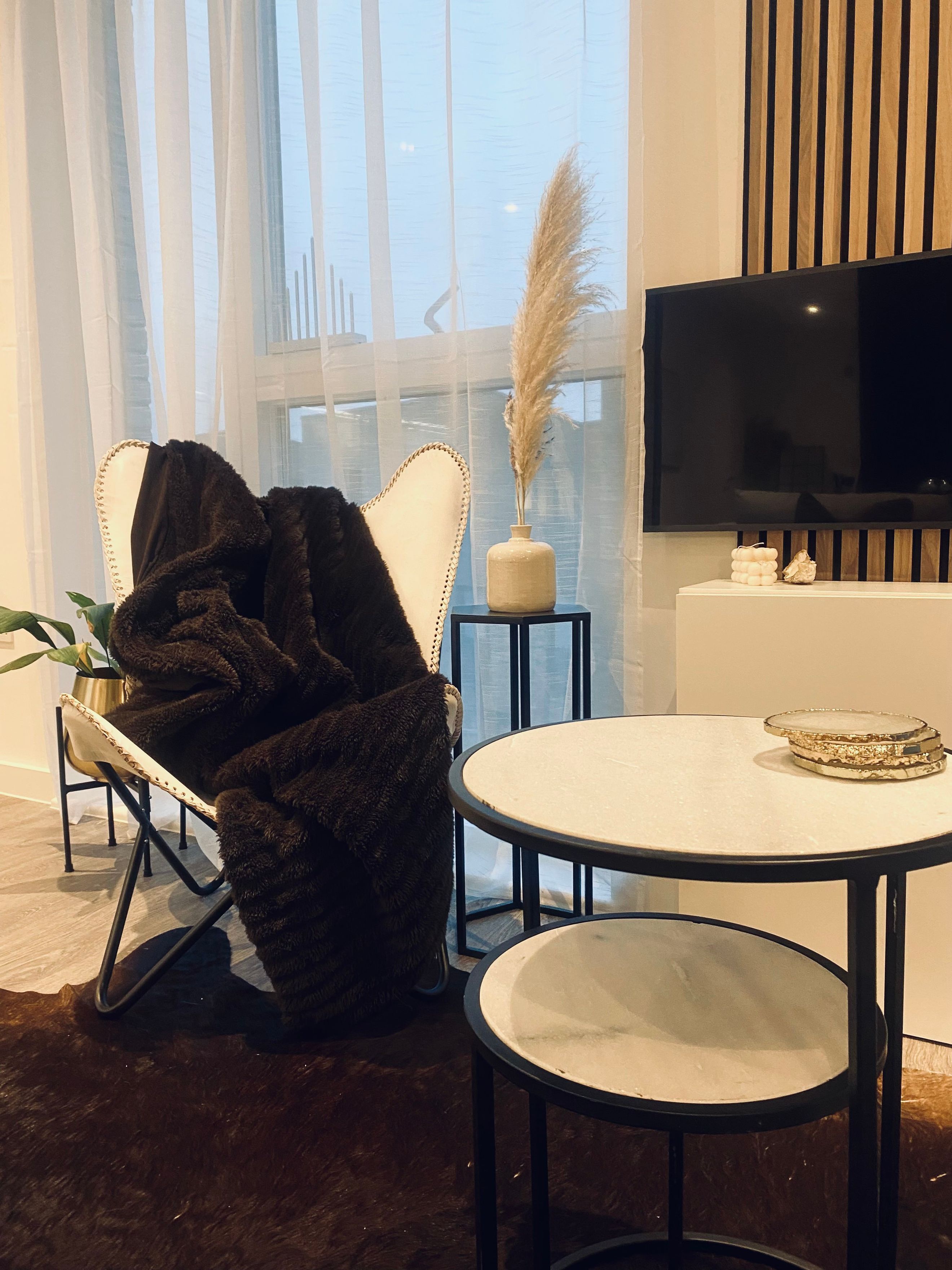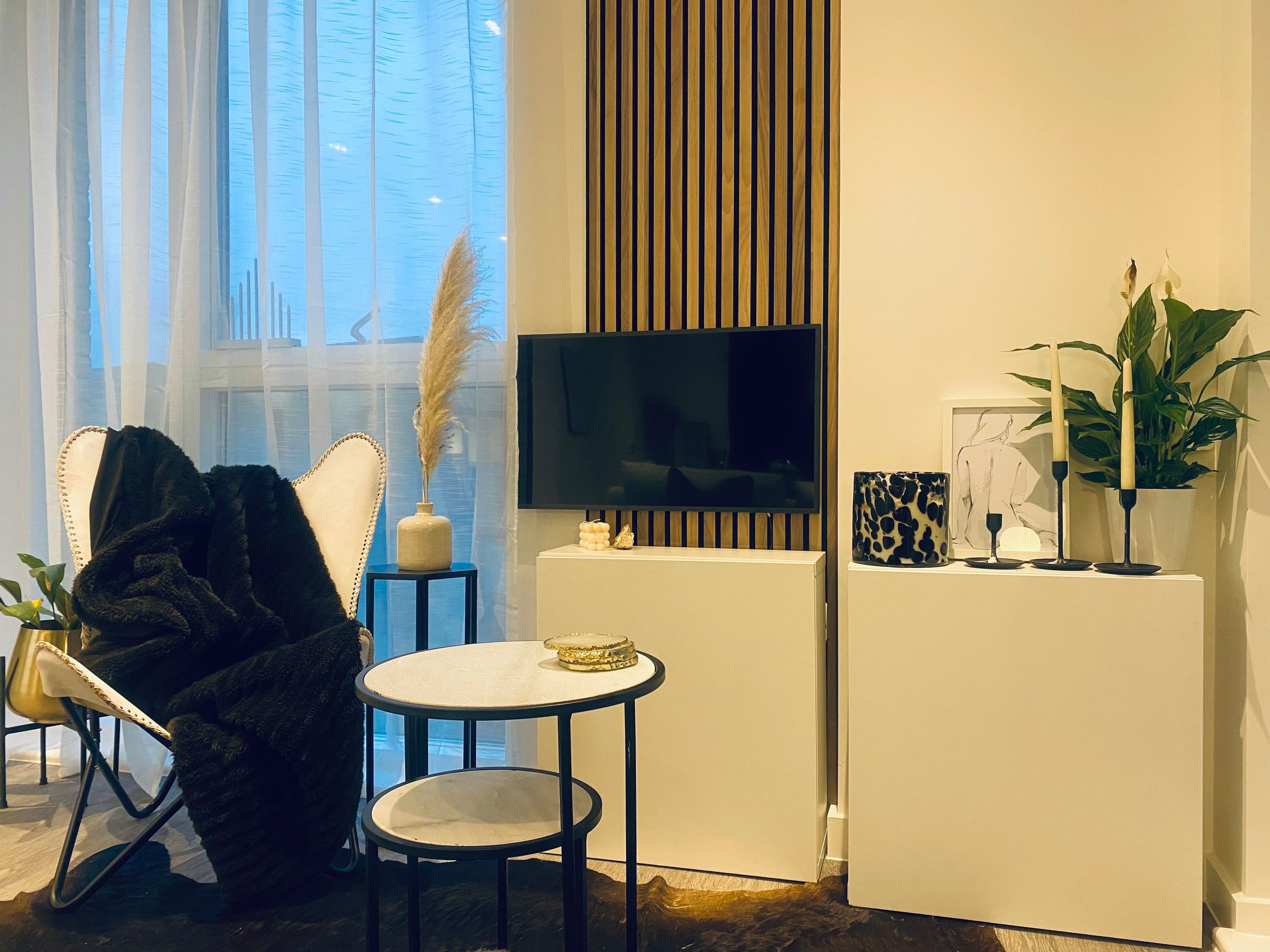This modern apartment has been designed by an interior designer and is one of the few 1-bedroom homes in the development that comes with an allocated parking space.