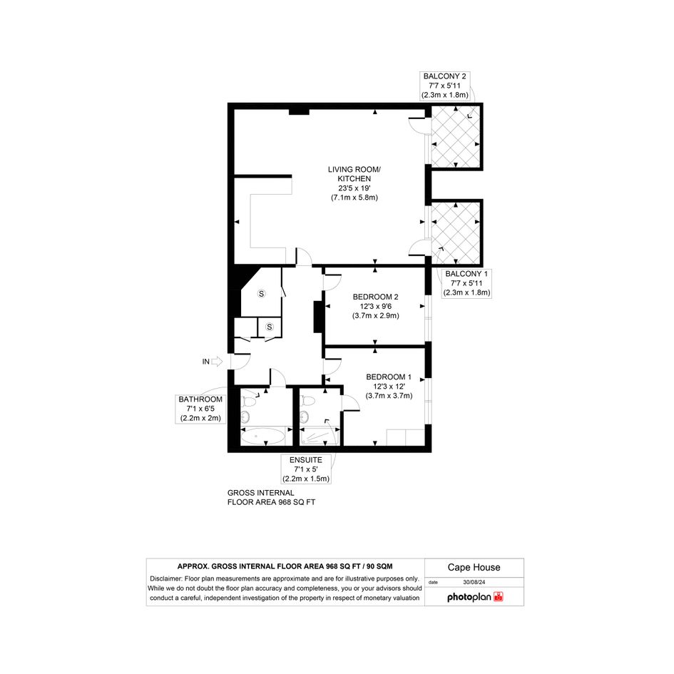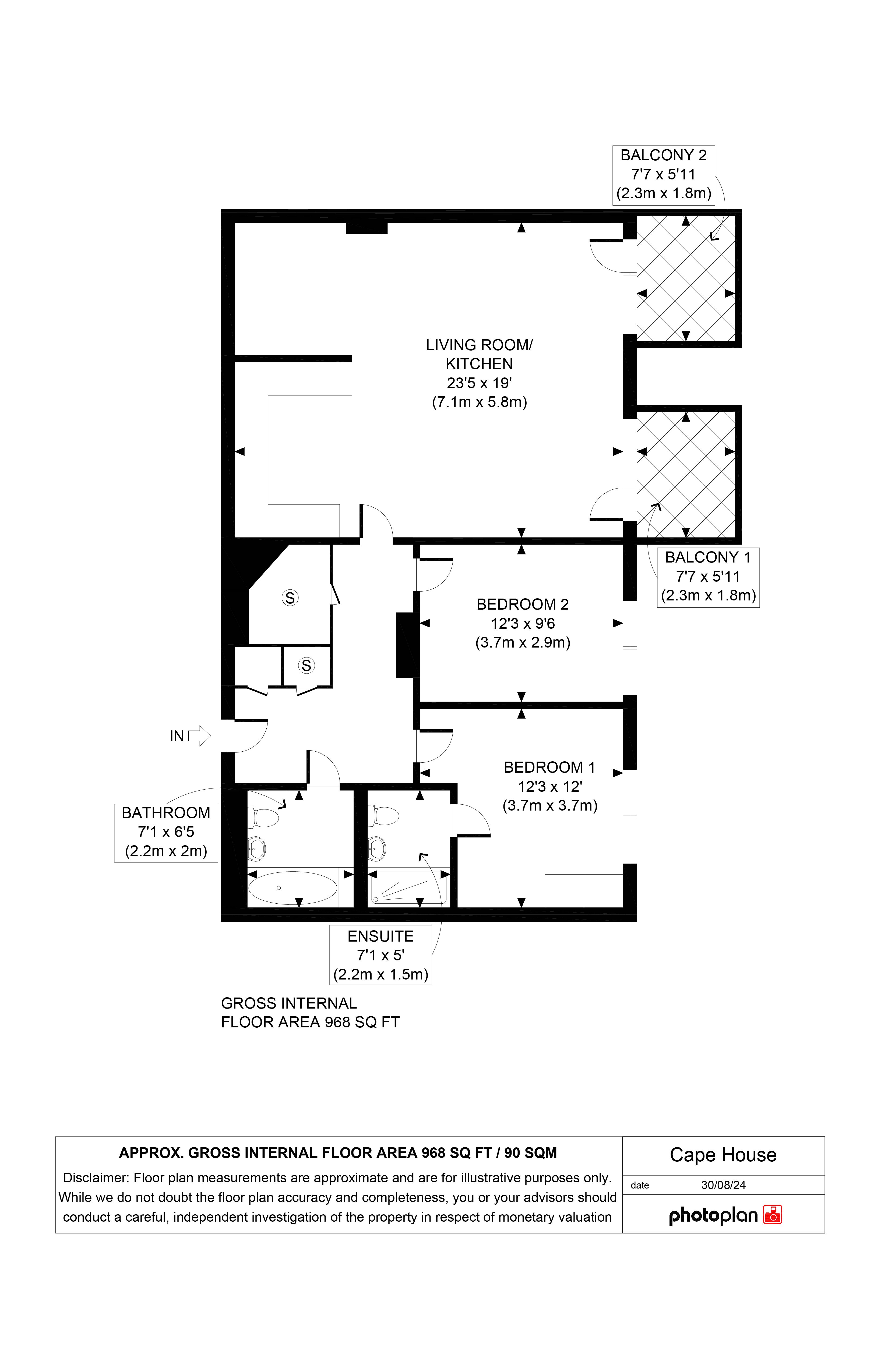 - Two balconies
