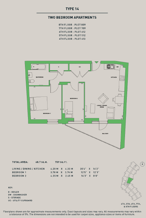 Located on the 4th floor and circa 739sqft of living accommodation. which has been designed for modern living. Excellent open plan living spaces which have been carefully planned to maximise space opening out onto your very own private balcony. Stylish modern kitchen with integrated appliances, elegant bathroom suite and comfortable bedrooms space.