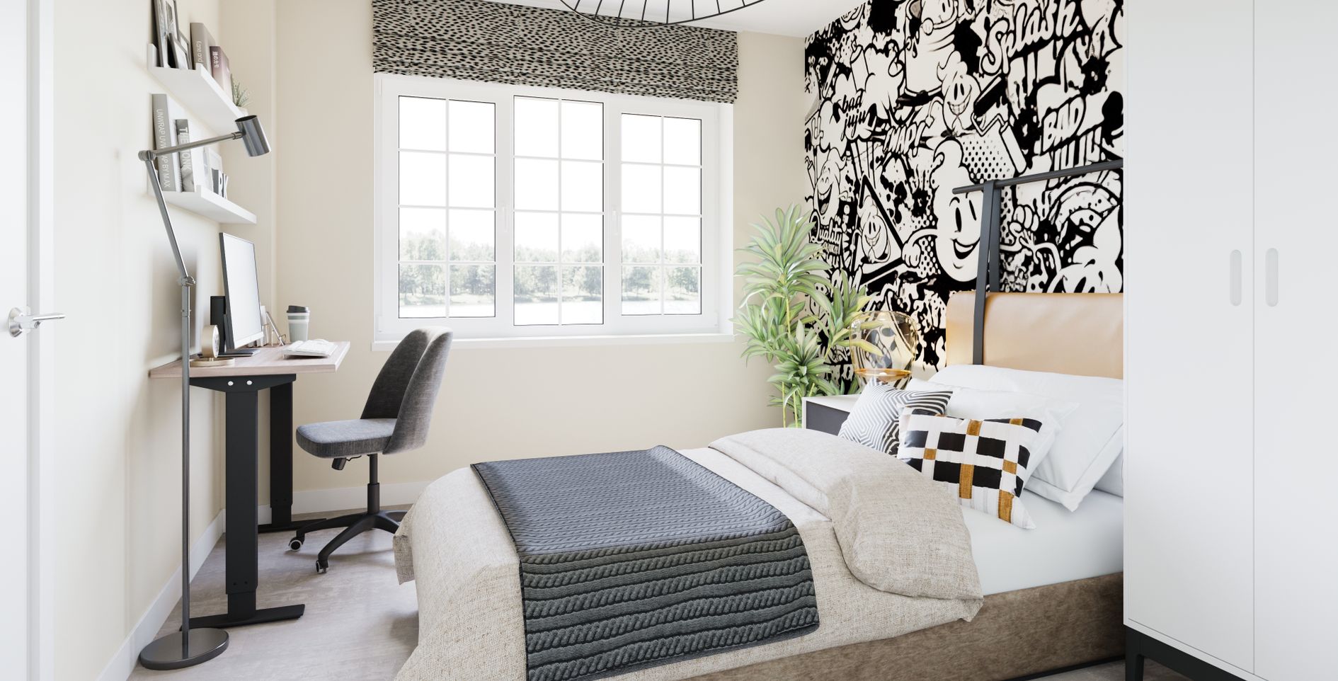 Head upstairs to the good-sized master bedroom which features a private en-suite bathroom. There are also two single bedrooms, either of which can also be used as a home office, along with the contemporary three-piece family bathroom with an over-bath shower and designer tiling and taps.