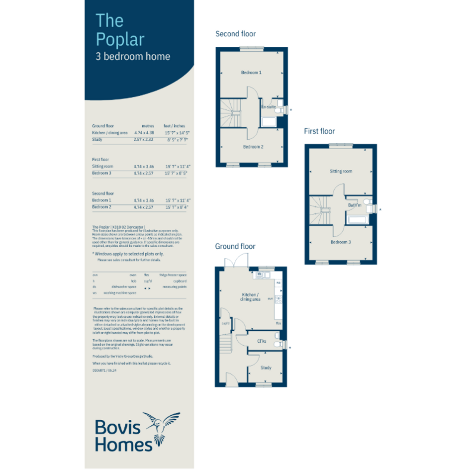 3 storey home- the ground floor features a study, kitchen/dining room and cloakroom, while on the first floor you will find a living room, bathroom and bedroom. Upstairs the second floor has two further bedrooms and a family bathroom.