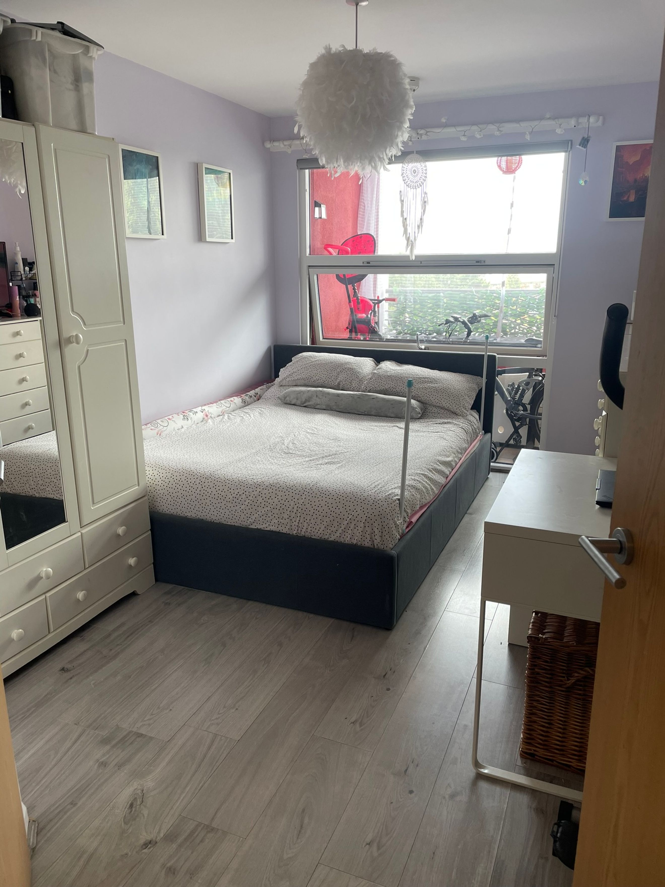 Bedroom - Double glazed floor to ceiling window that opens fully in the middle. Radiator. Wood laminate flooring. Door to En-suite. Aerial, internet and multiple plug sockets.