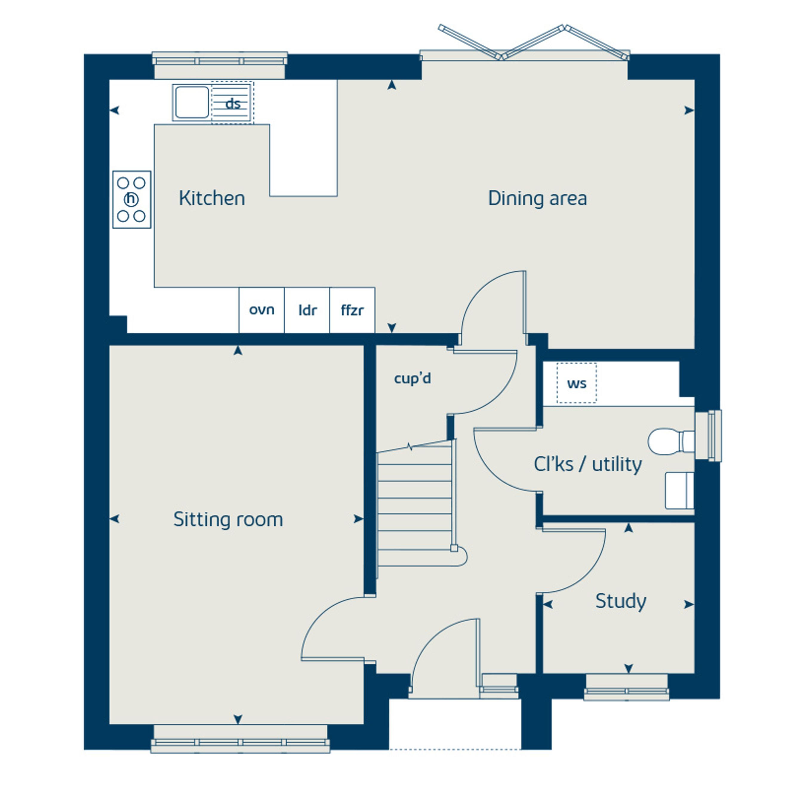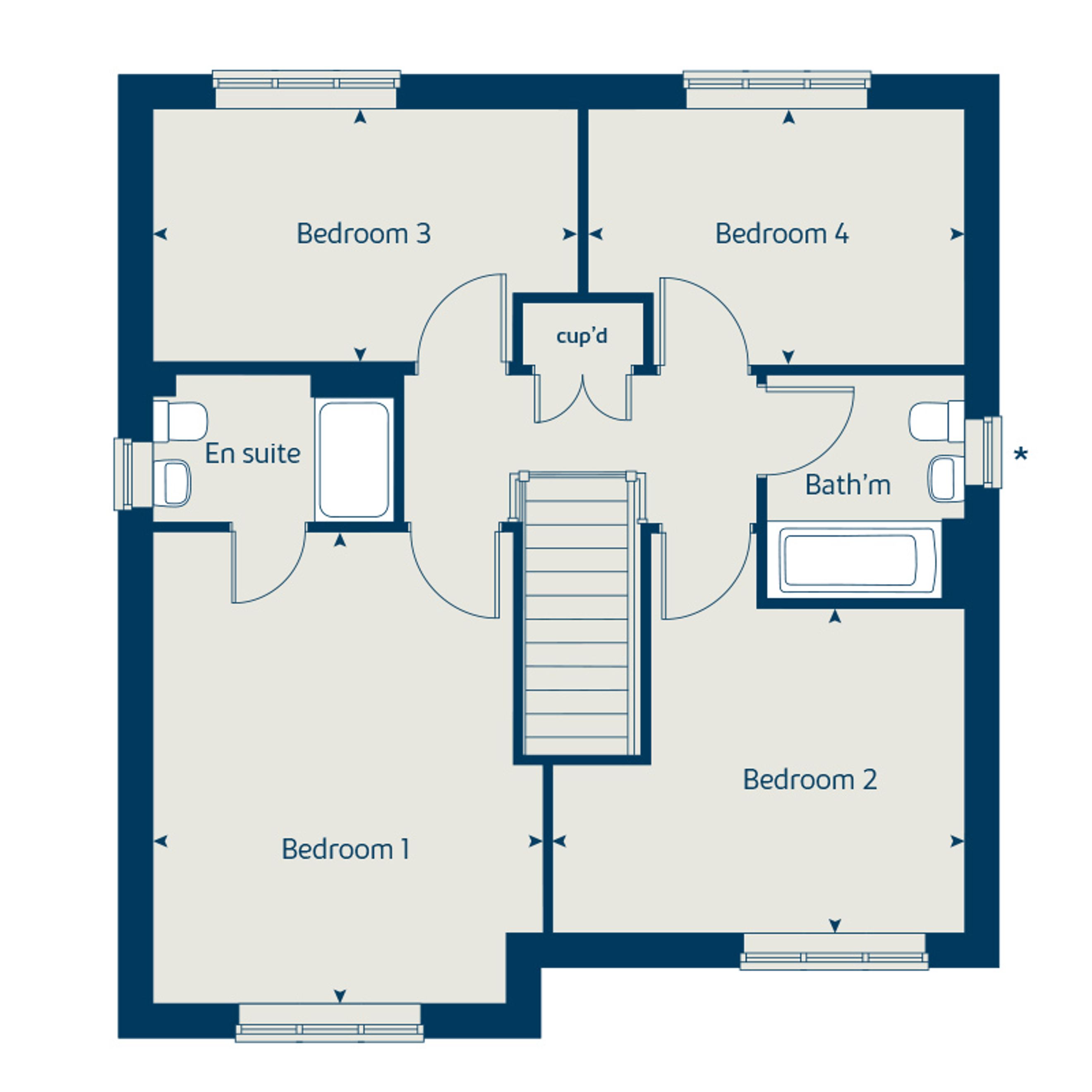 The Aspen’s unique design features, teamed with a number of traditional touches, give this home its unique and instant appeal. The property has a stunning open plan kitchen with dining room where guests will enjoy taking drinks outside through the stylish bi-fold doors. A separate sitting room and study means there’s plenty of space to enjoy some peace and quiet. Upstairs are four bedrooms and a bathroom, bedroom one is unique with an ensuite and plentiful space for built in wardrobes.
