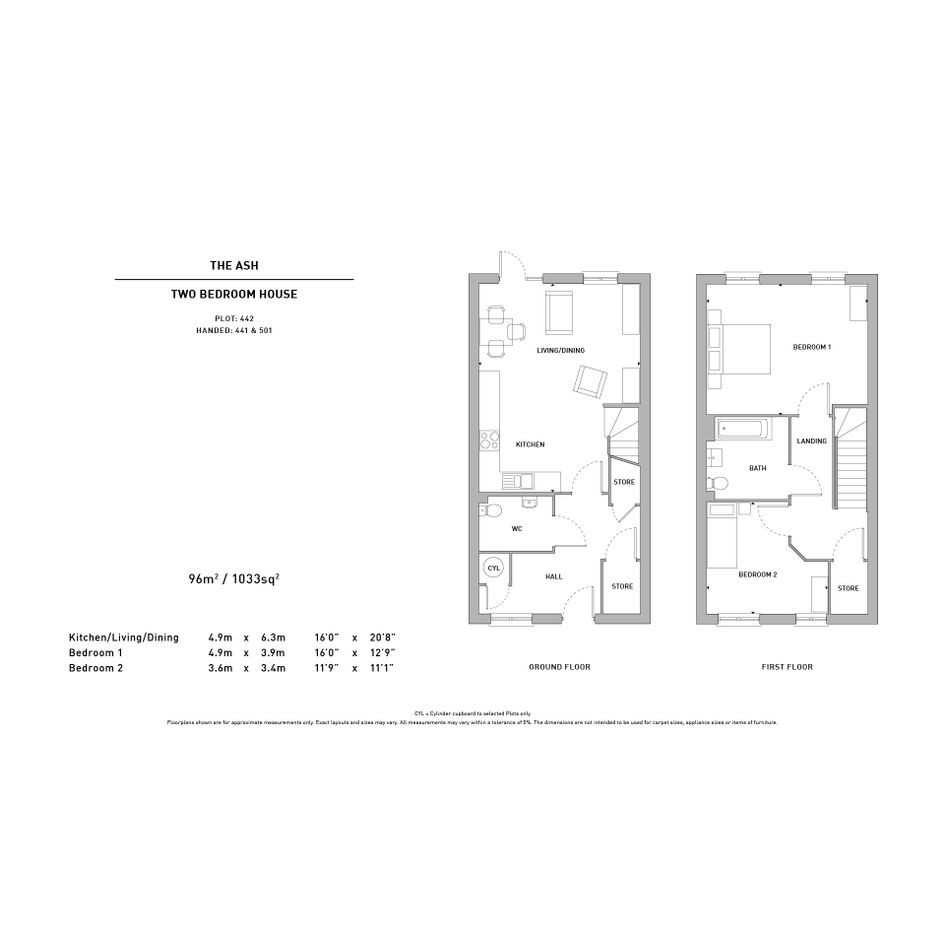 Two bedroom home with open plan kitchen, living and dining area. Upstairs are two bedrooms and family bathroom.