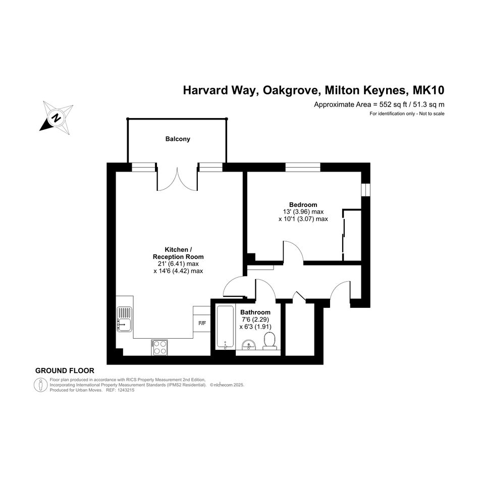 A smartly-presented flat on the ground floor of this modern block. The property is a good size and has a spacious, open-plan kitchen/reception room with white units, contrasting worktops and integrated appliances. Double doors lead out onto a rear (south-east) facing balcony. There is an attractive bathroom, a fitted wardrobe in the bedroom and a storage/utility cupboard in the entrance hallway. Well insulated walls and high performance glazing help keep energy costs down. Bell Apartments is part of a substantial development in the Oakgrove suburb between Willen Lake, to the north, and Ouzel Valley Park to the south. There are shops, including a Waitrose supermarket, nearby plus the city centre can be reached via brief bus or cycle ride. The flat comes with the use of an allocated parking space.