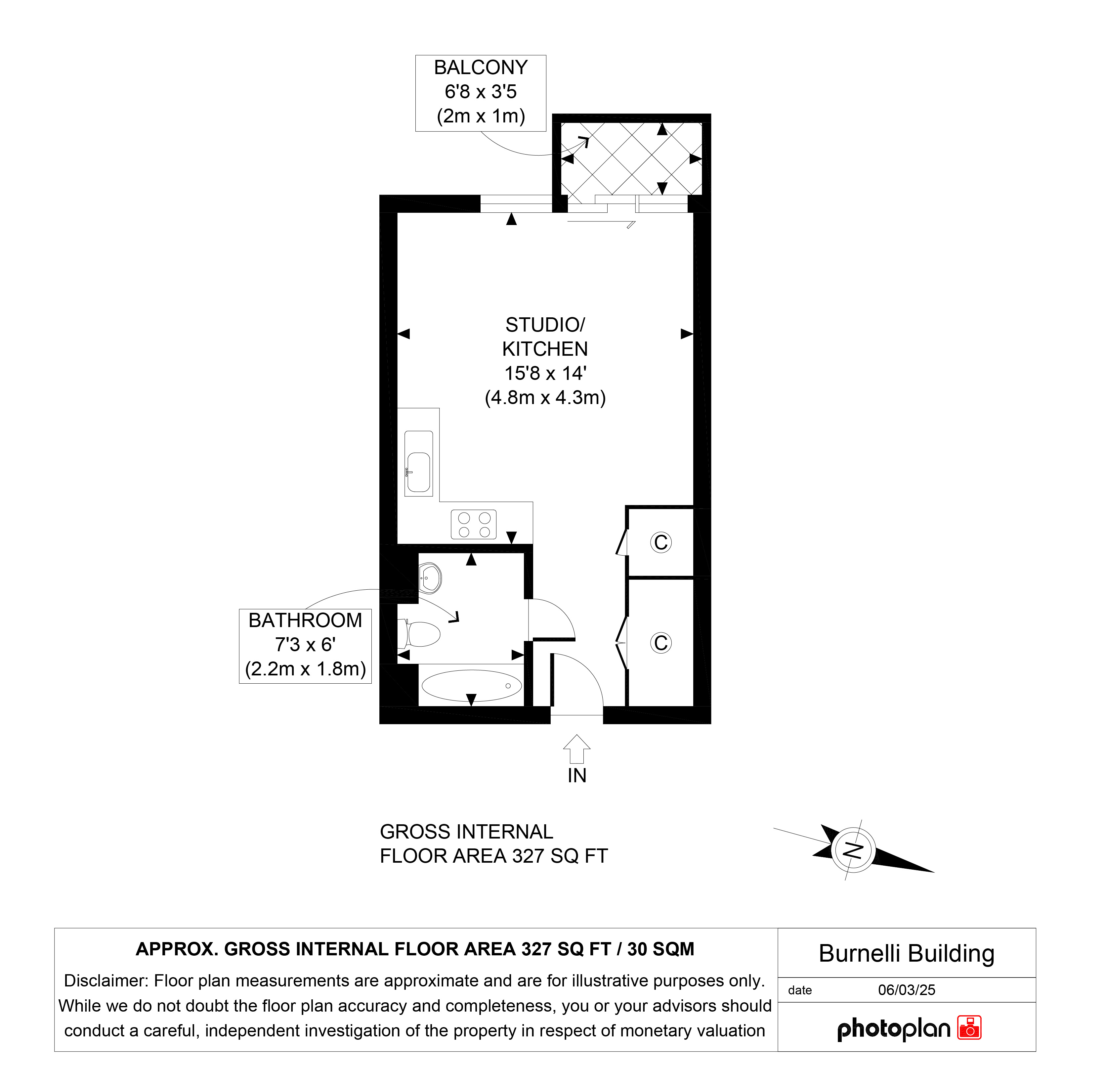 - Balcony accessed from the studio area
