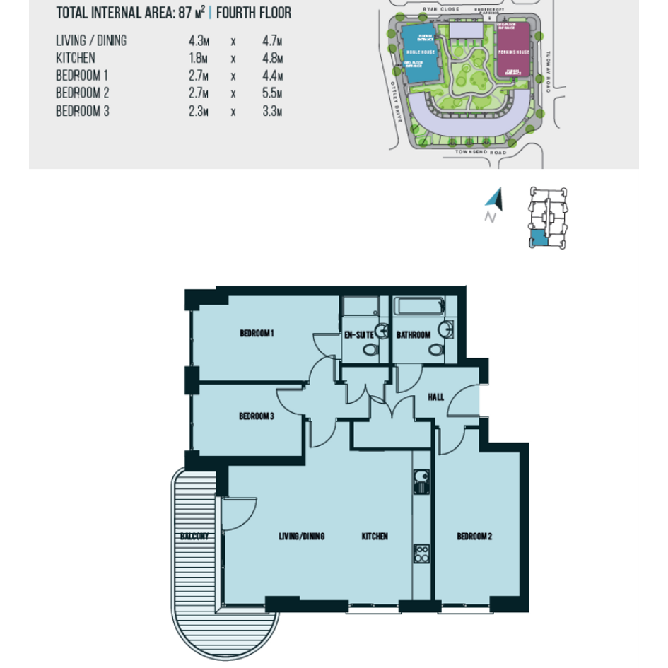 Noble House is a three bedroom, fourth floor apartment located in Kidbrooke.