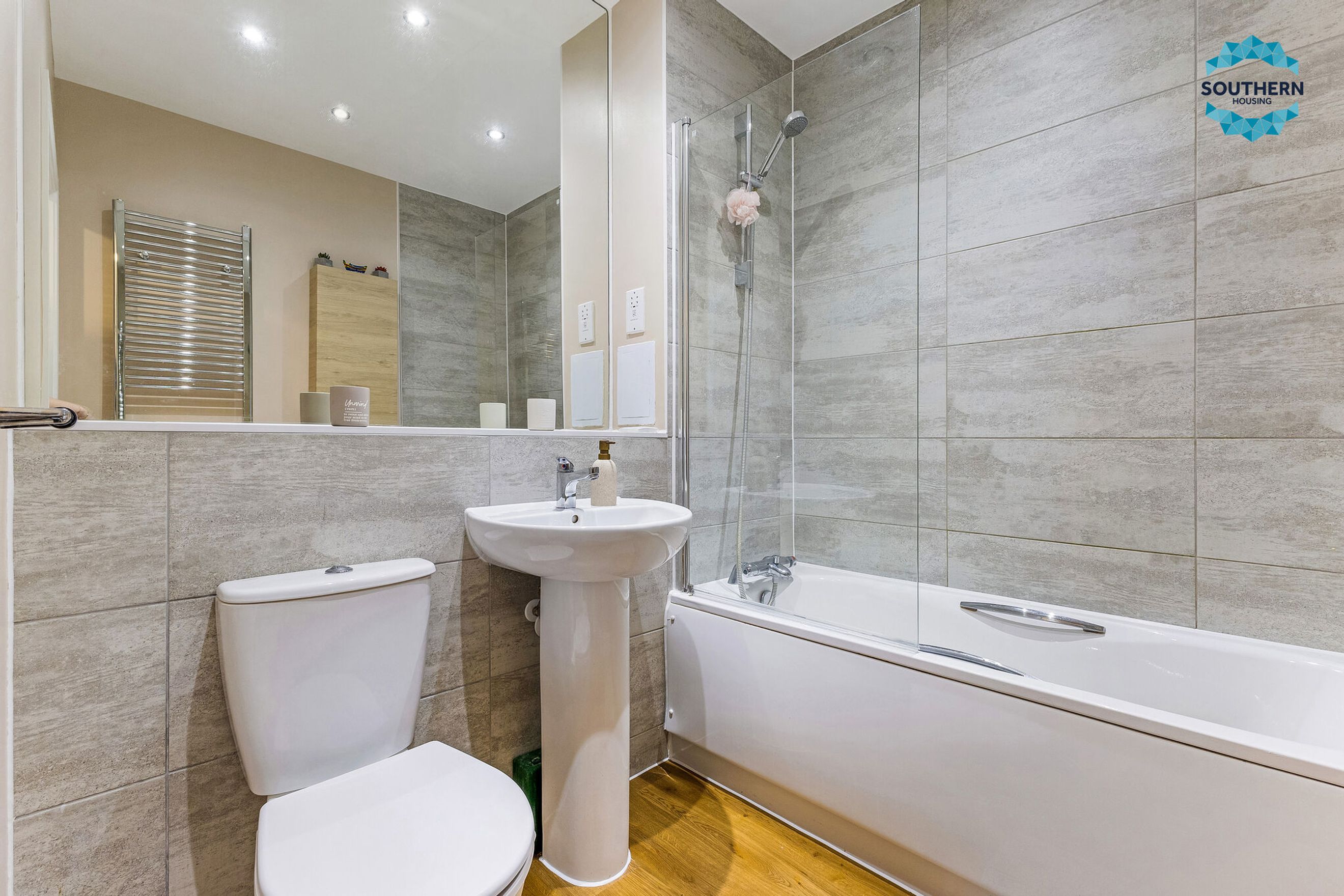 This amazing home offers a great feel of space upon entering the front door; down the hall you will have a large storage cupboard offering a generous amount of additional storage space ensuring that you're able to keep your home clear and clutter-free, whilst being able to maximise the provided floor area. The main bathroom, styled with a contemporary grey tiled design; fitted with a bath, shower, sink, toilet and heated drying rail leaving you less to worry about once moved in. The properties sole bedroom, offers ample space to house essential belongings such as a large bed, additional storage and a TV setup for example; also provided with an outward opening door to the balcony creating an often needed breeze throughout your home in the summer months. Rounding off this amazing property, you're provided with a great amount of space in the living room to house a large sofa and other essential belongings; allowing enough space to be re-designed and imagined to fit your needs. Also providing access to the Balcony through an outward opening door. The kitchen area comes fitted with a generous amount of cupboards ensuring that each item has its home, leaving a clutter-free countertop; also fitted with an integrated oven, stove and extractor fan making sure that you're almost fully equipped from move-in.