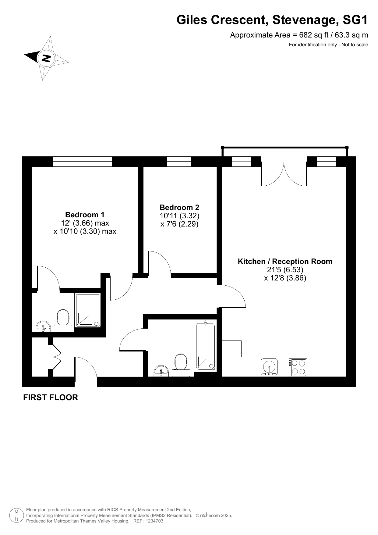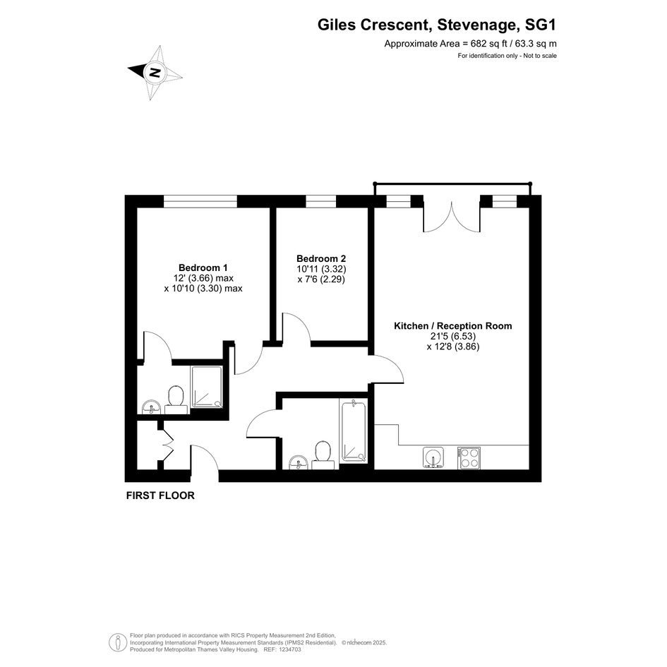 Situated on the first floor is this well-presented apartment with accommodation comprising two double bedrooms, two bathrooms and a spacious open plan kitchen/living space with a juliet balcony. There is also one allocated parking space and the balance of a long lease.