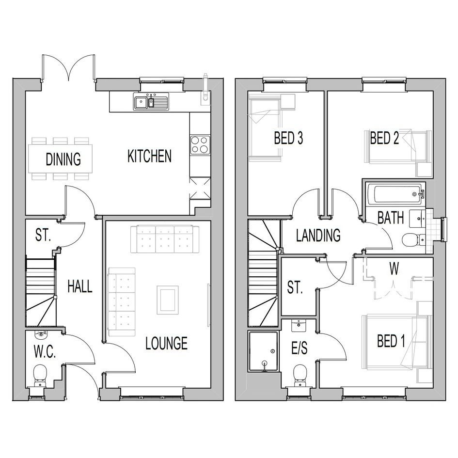 Welcome to The Whitton. A comfortable three-bedroom home designed for modern living. Step into a hallway leading to a spacious front lounge, perfect for relaxing or family time. At the rear, the open-plan kitchen-diner creates a sociable hub, with French doors opening to a private garden for effortless indoor-outdoor living. Upstairs, three versatile bedrooms include a main suite with en-suite and wardrobe space, plus a well-appointed family bathroom. With thoughtful storage, a convenient downstairs WC, and allocated parking, The Whitton offers comfort, practicality, and flexibility for families and professionals seeking a home that blends lifestyle and value.