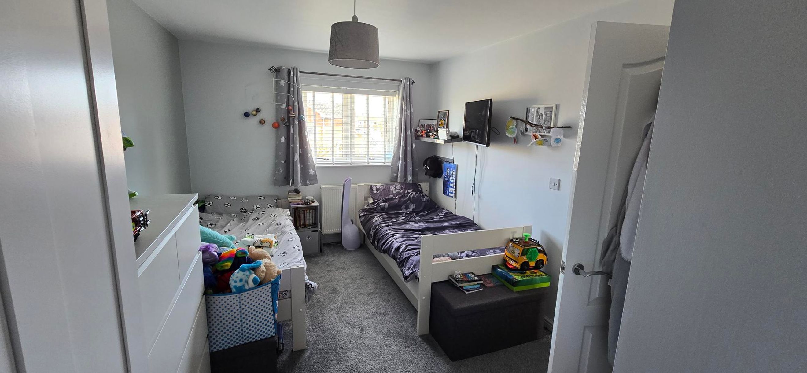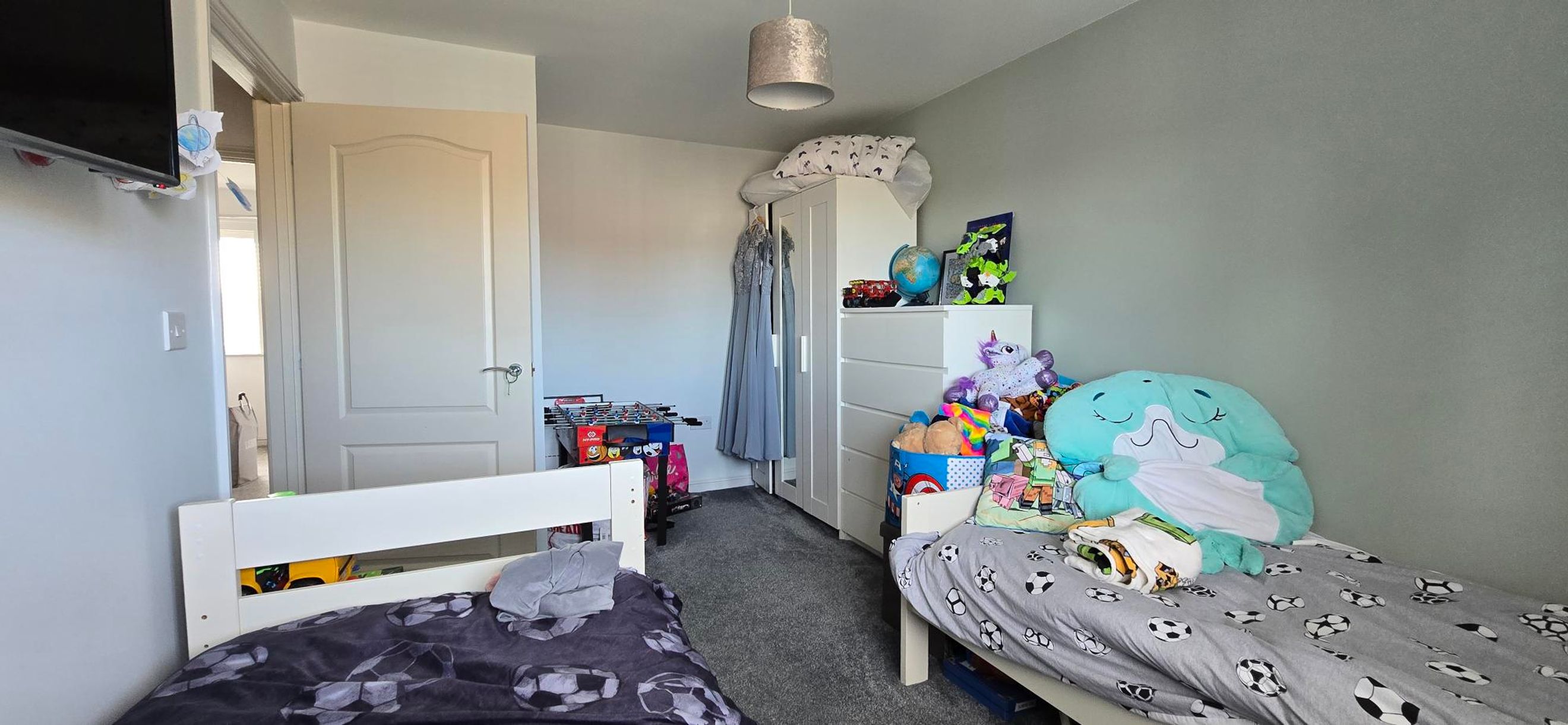 The first-floor features two generously sized bedrooms. The principal bedroom is located at the front of the property and benefits from an alcove area with a built in wardrobe floor to ceiling, Bedroom two is positioned at the rear and enjoys plenty of natural light from its big windows, making it a versatile space.