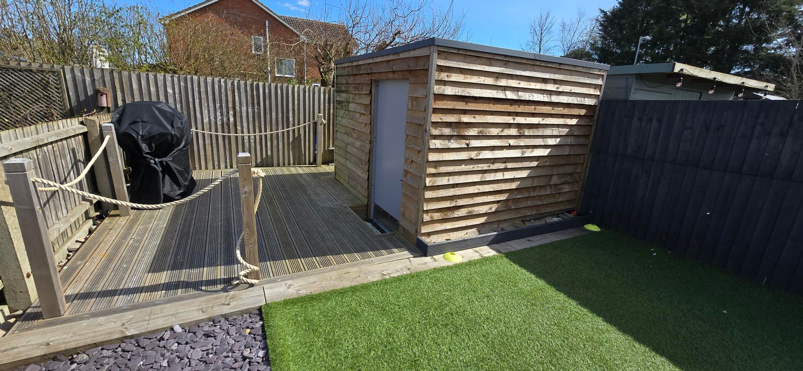 The south-facing rear garden is a fantastic space for both relaxation and entertaining. A large patio area extends from the cloak room door, providing the perfect spot for outdoor dining or lounging in the sun. Bottom Decking Area leads around to the shed and side gate via a passage, ensuring easy access and additional storage.