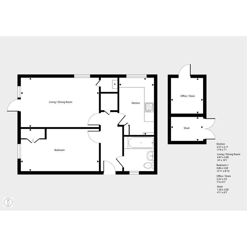 Featuring an open-plan living / dining room with dual-aspect windows. The kitchen is fitted with an integrated oven and gas hob. The bedroom is a comfortable double with a wardrobe. The bathroom has a white suite.