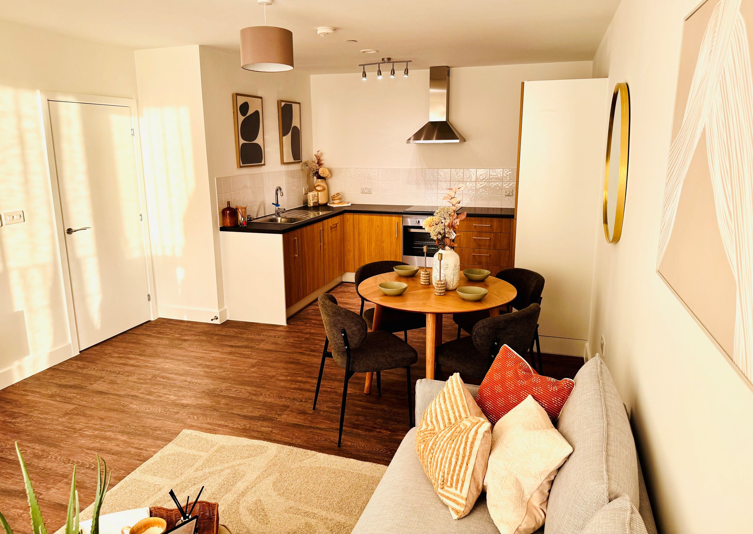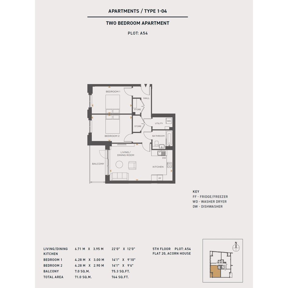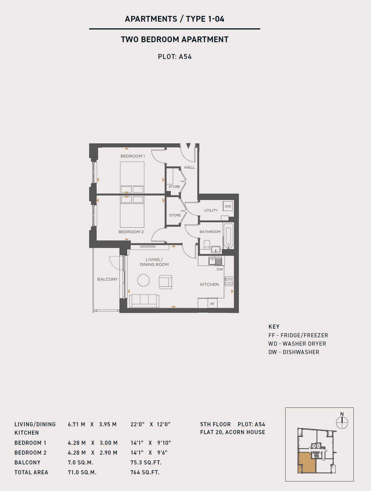 This spacious apartment features an open-plan kitchen/living/dining area opening out onto a balcony, two double bedrooms and generous storage space.