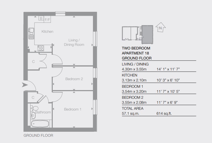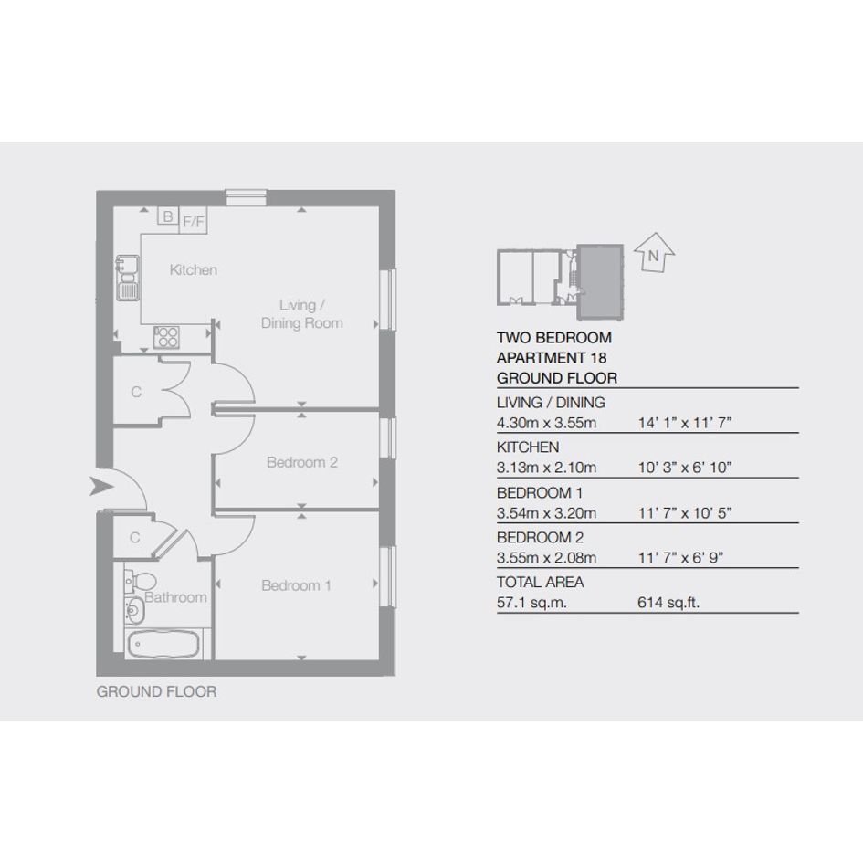 A spacious and well-located two-bedroom ground floor flat in Newbury with easy access to an array of amenities and the motorway network. Built in 2019, the flat offers modern features and excellent natural light. Accommodation comprises an entrance hall with ample storage, two well proportioned bedrooms, a modern bathroom and a bright and spacious reception room and fully fitted kitchen. There is the balance of a long lease and two allocated parking spaces. NB. There is a digital image included of the main bedroom showing the completed wardrobe space.