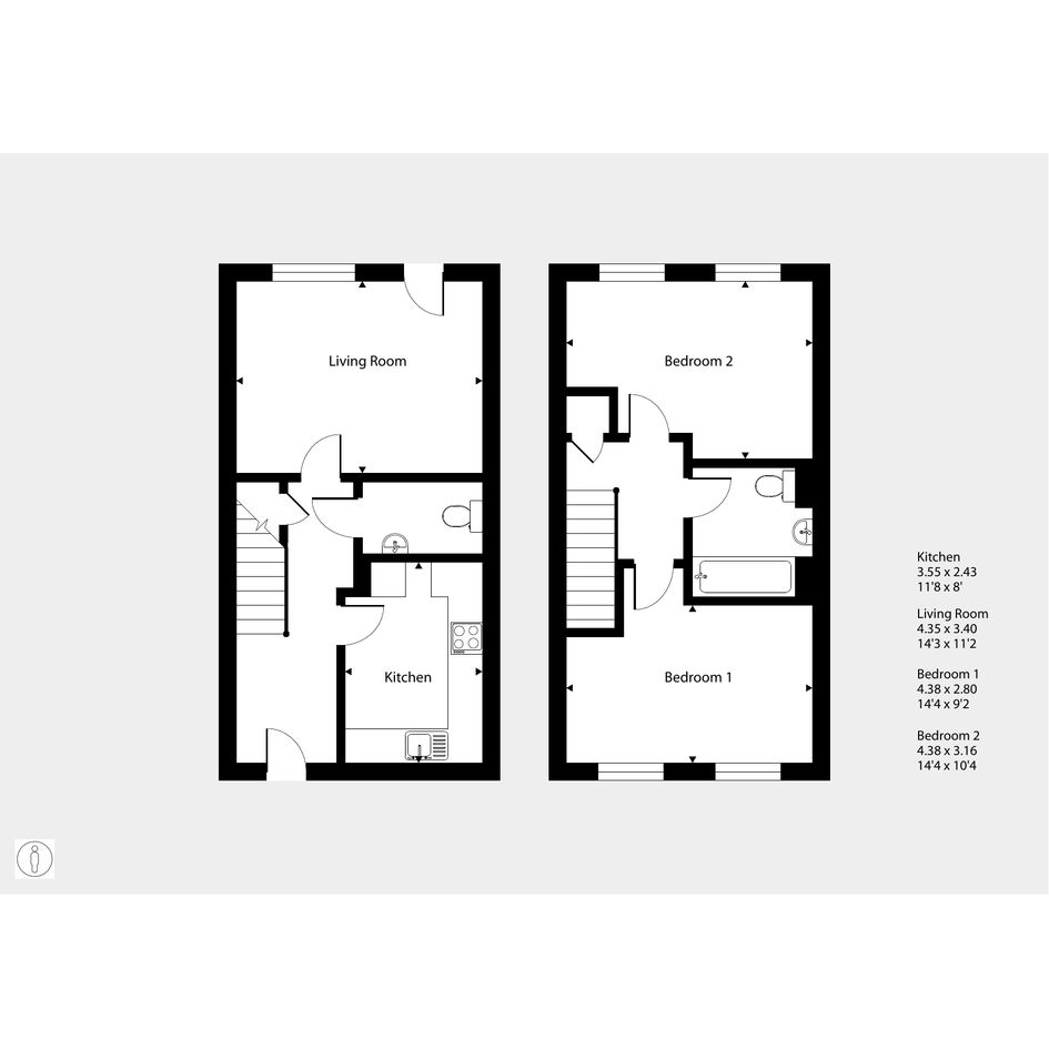Upstairs, there are two comfortable bedrooms. The bathroom has a white suite.