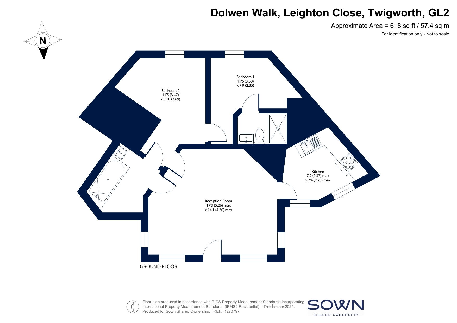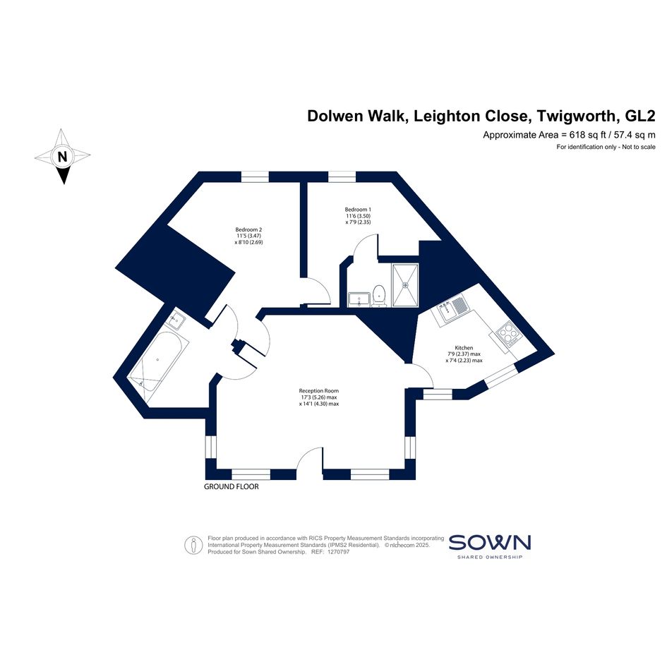A two bedroom, two bathroom ground floor apartment within this 2022 built development. The home is well presented throughout with accommodation comprising entrance hall, two double bedrooms, ensuite shower room, family bathroom, spacious living room and separate kitchen. This property benefits from two allocated parking spaces and a 122 year lease.