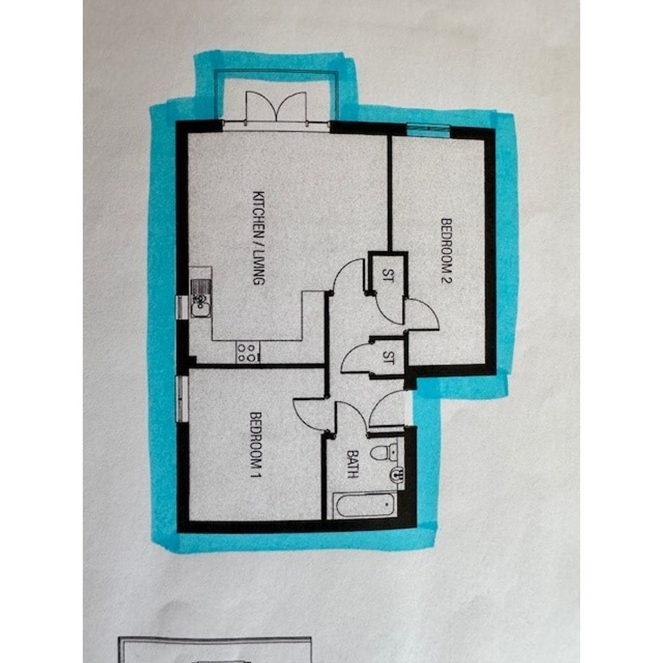 The property features a spacious living area, a well-equipped kitchen, and two bedrooms, providing a versatile space suitable for professionals, couples, or small families.