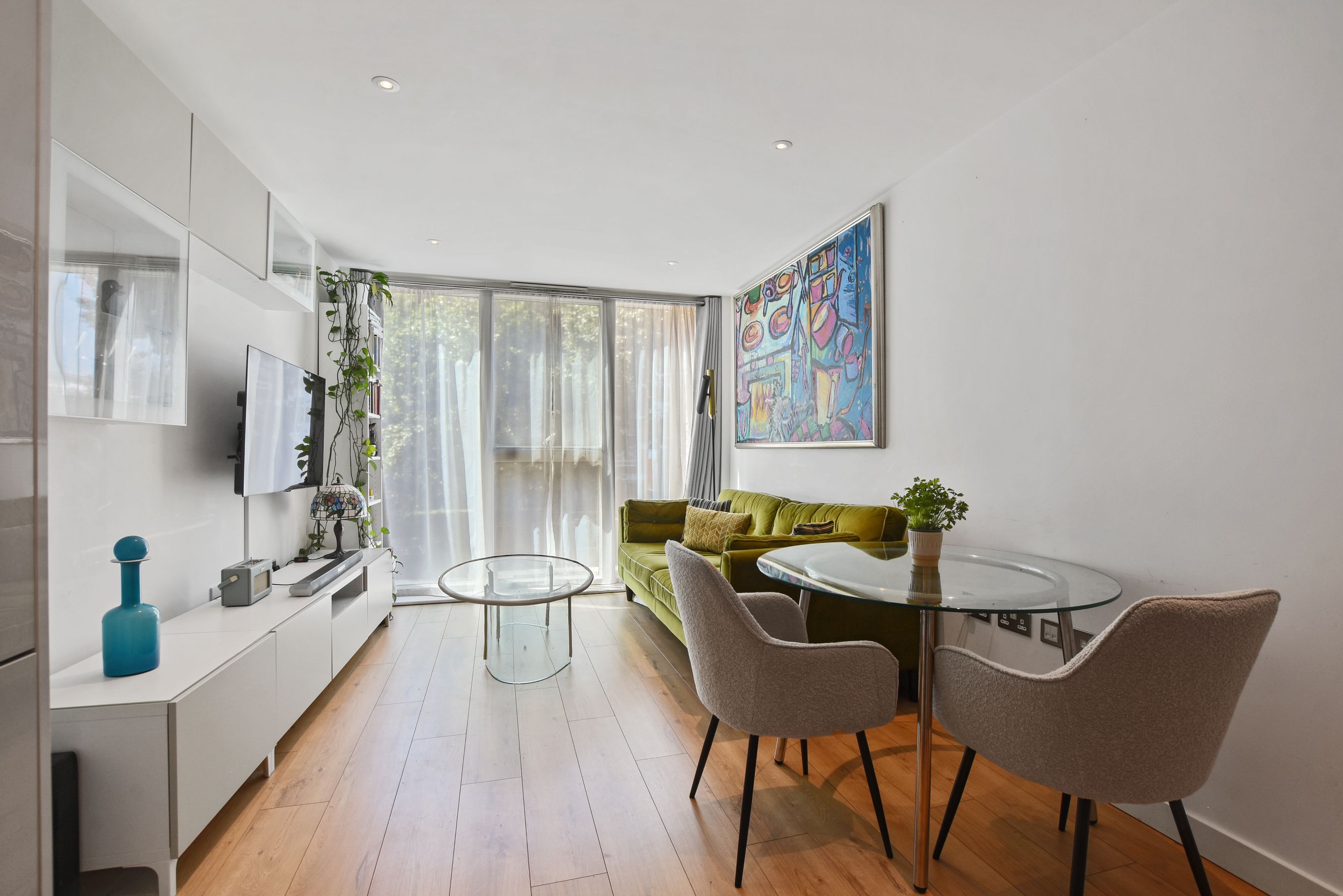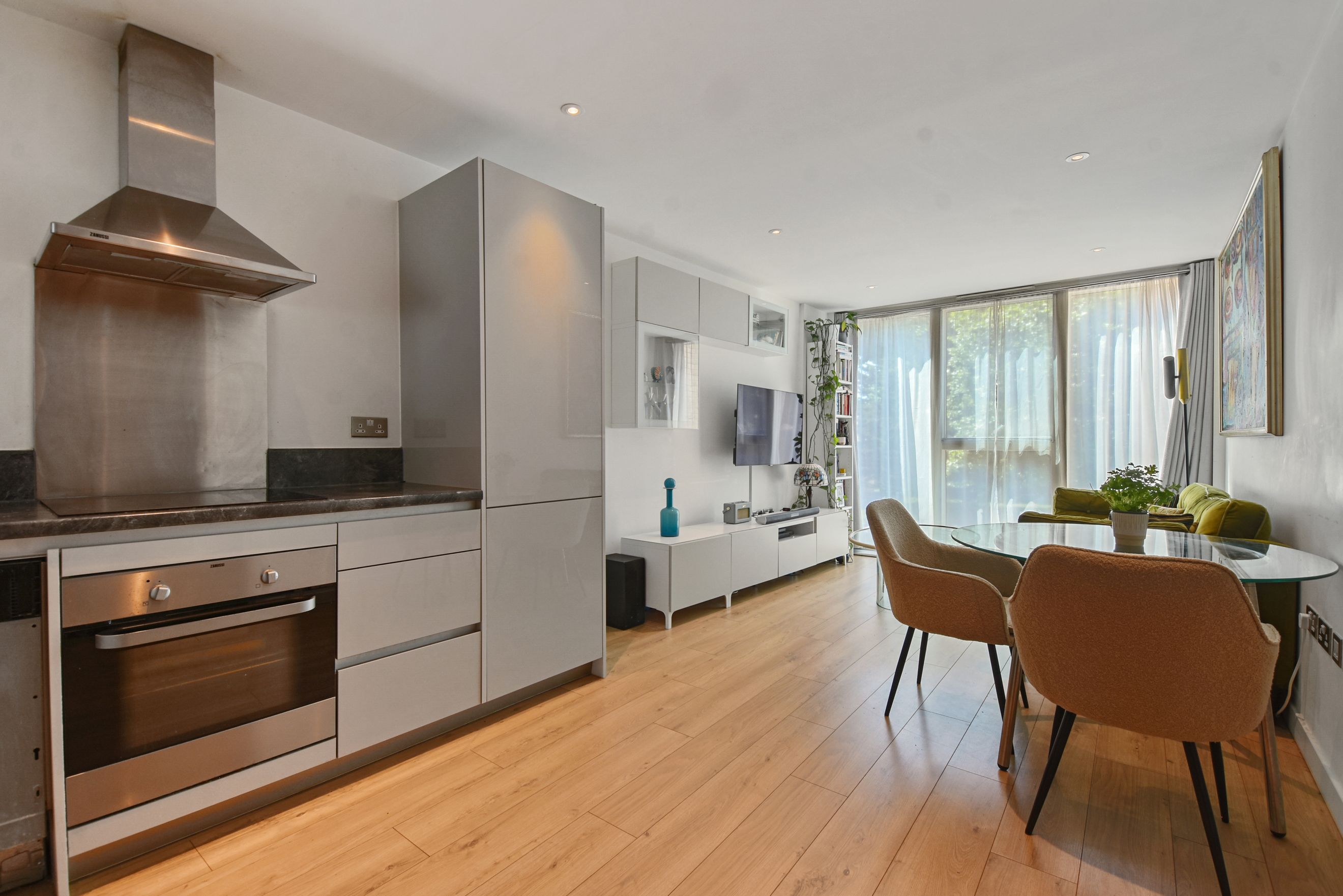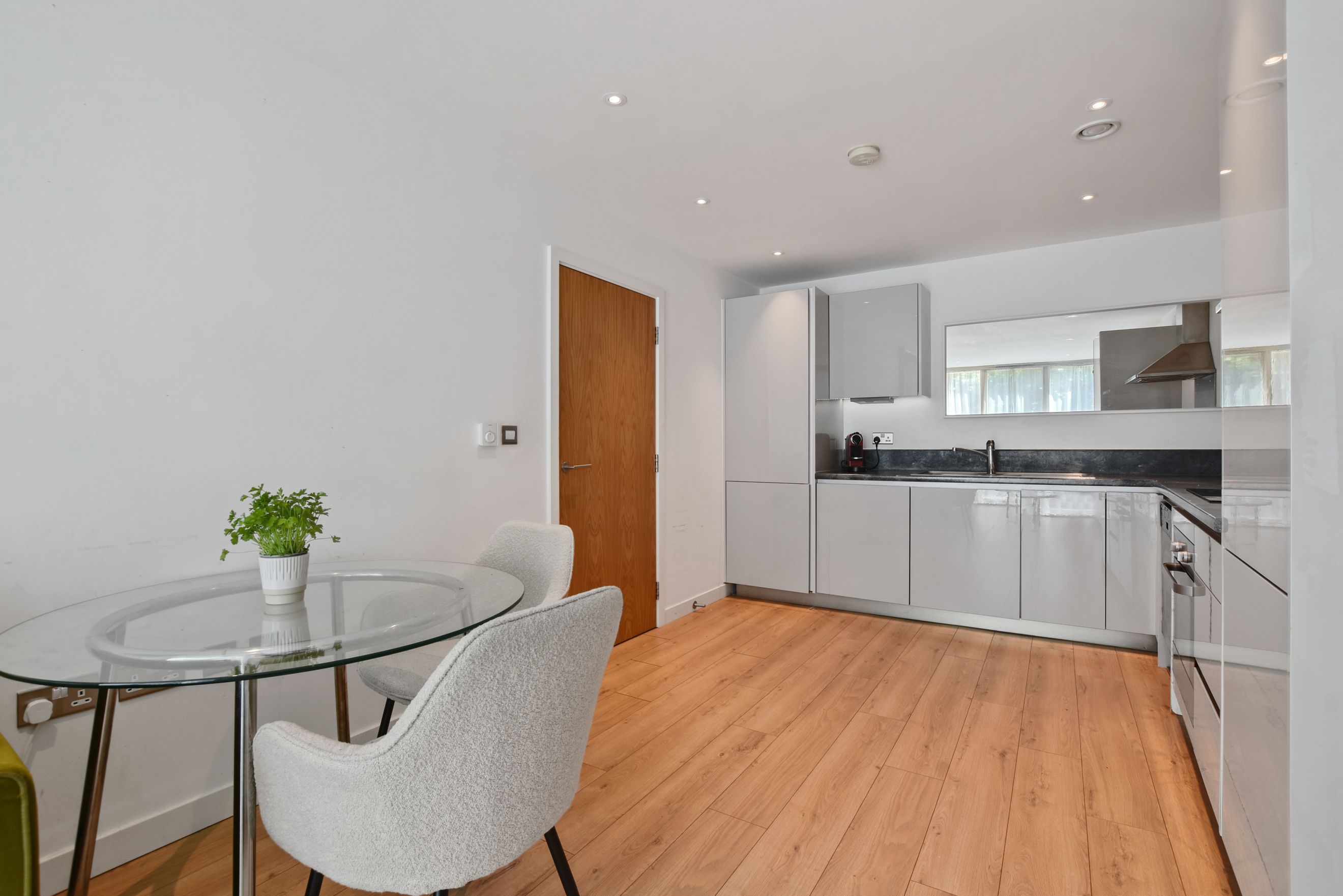 The property is a one bedroom first floor flat within a tiered four-six storey modern,