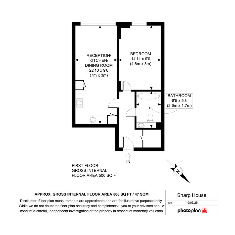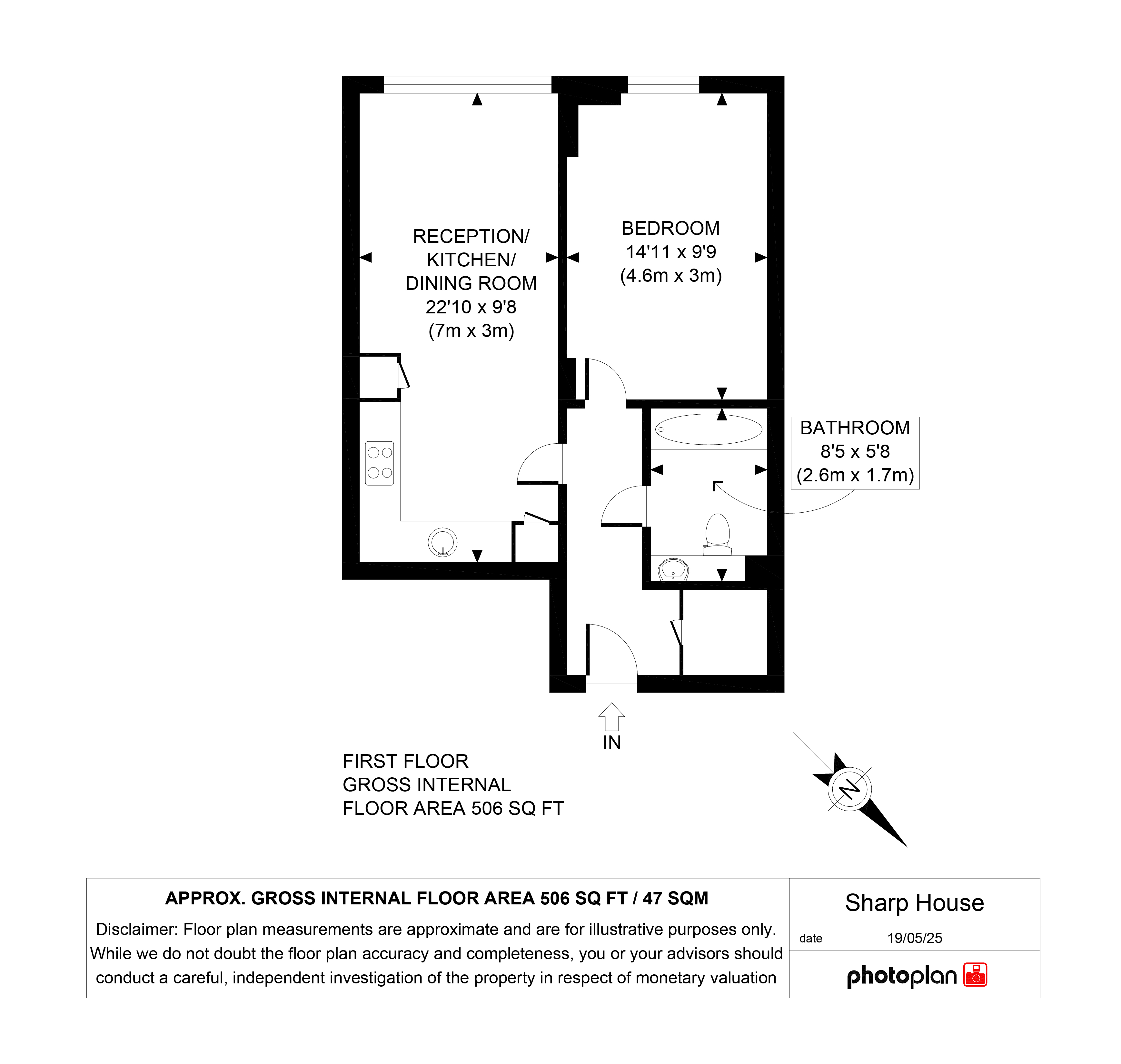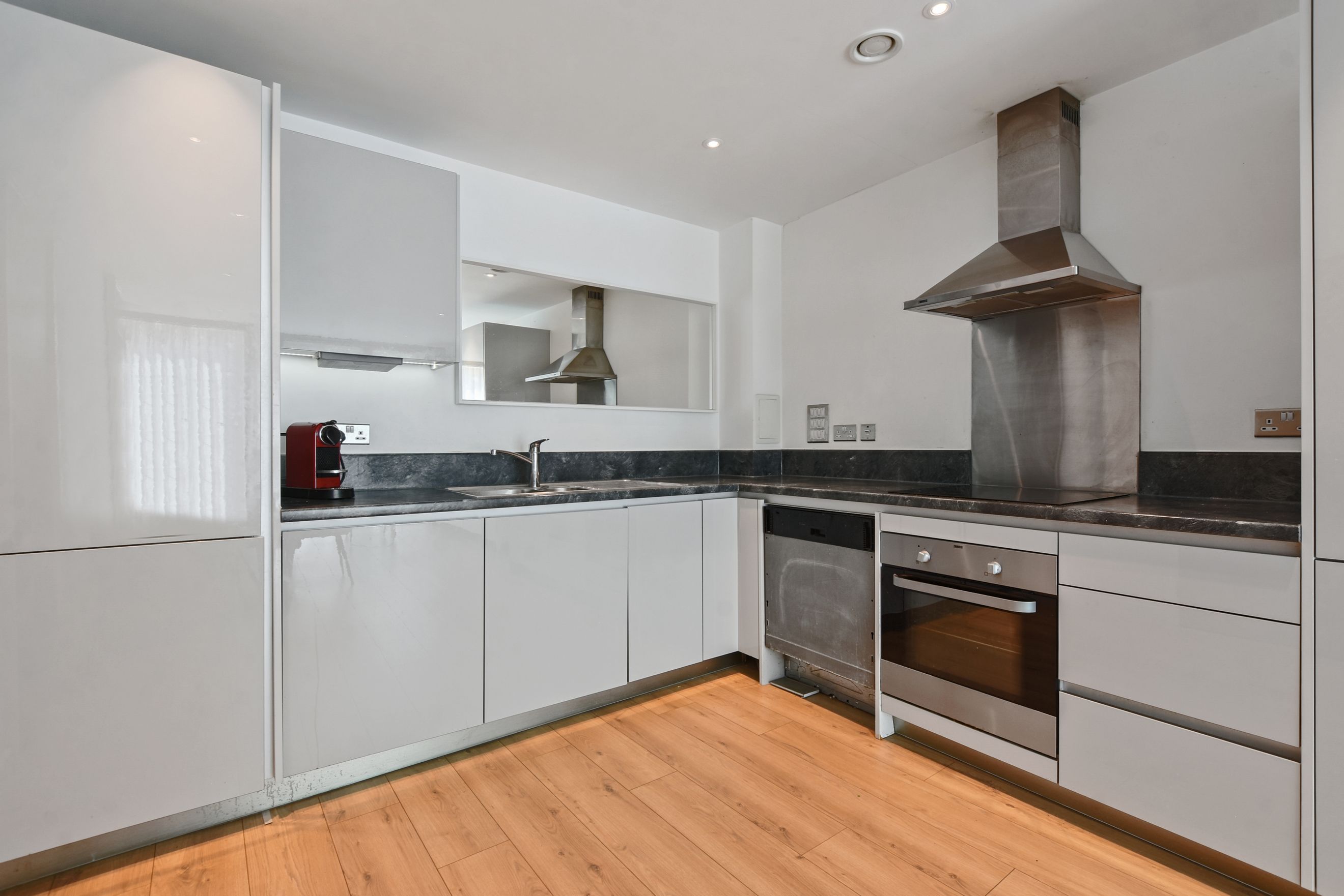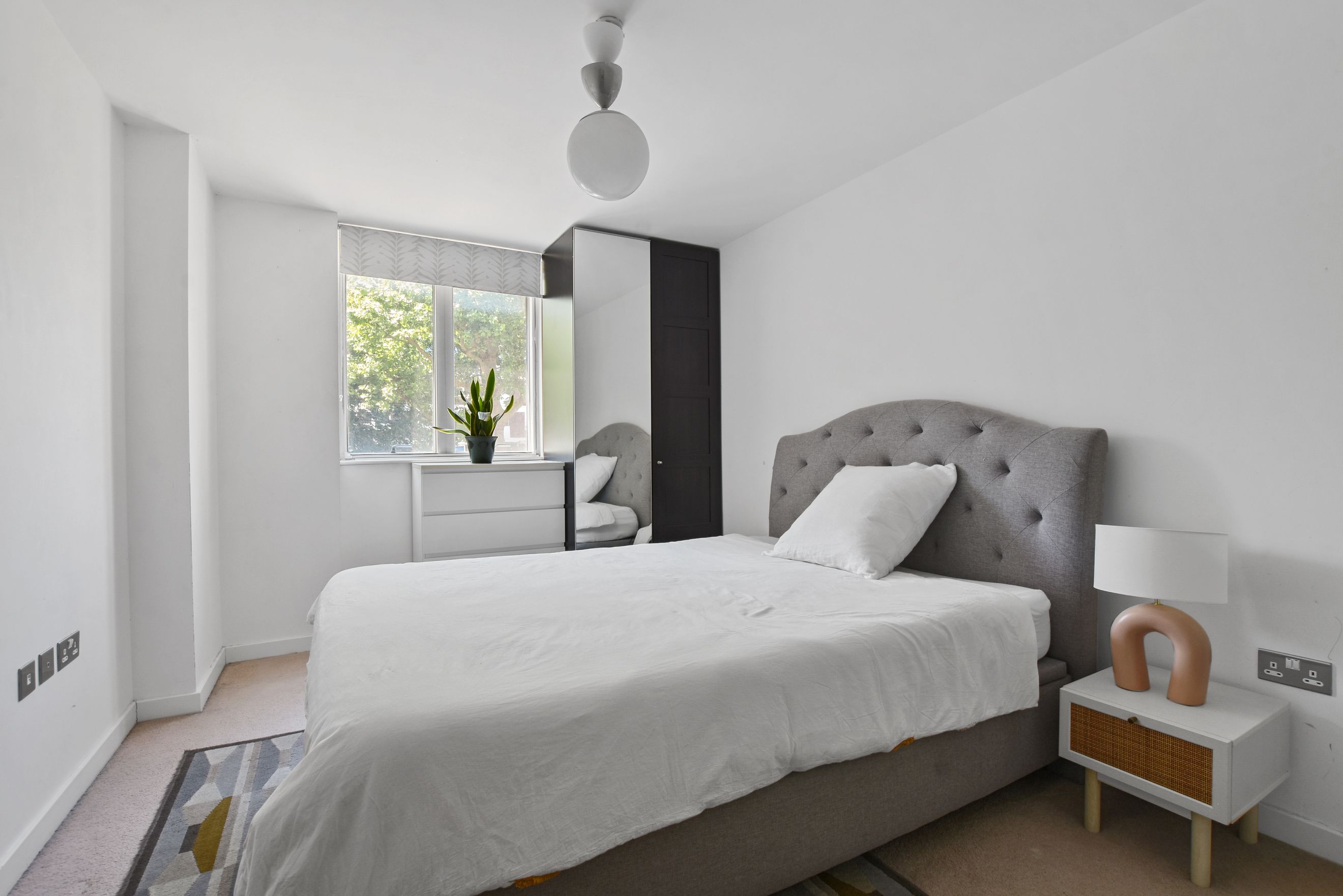 The property is a one bedroom first floor flat within a tiered four-six storey modern,