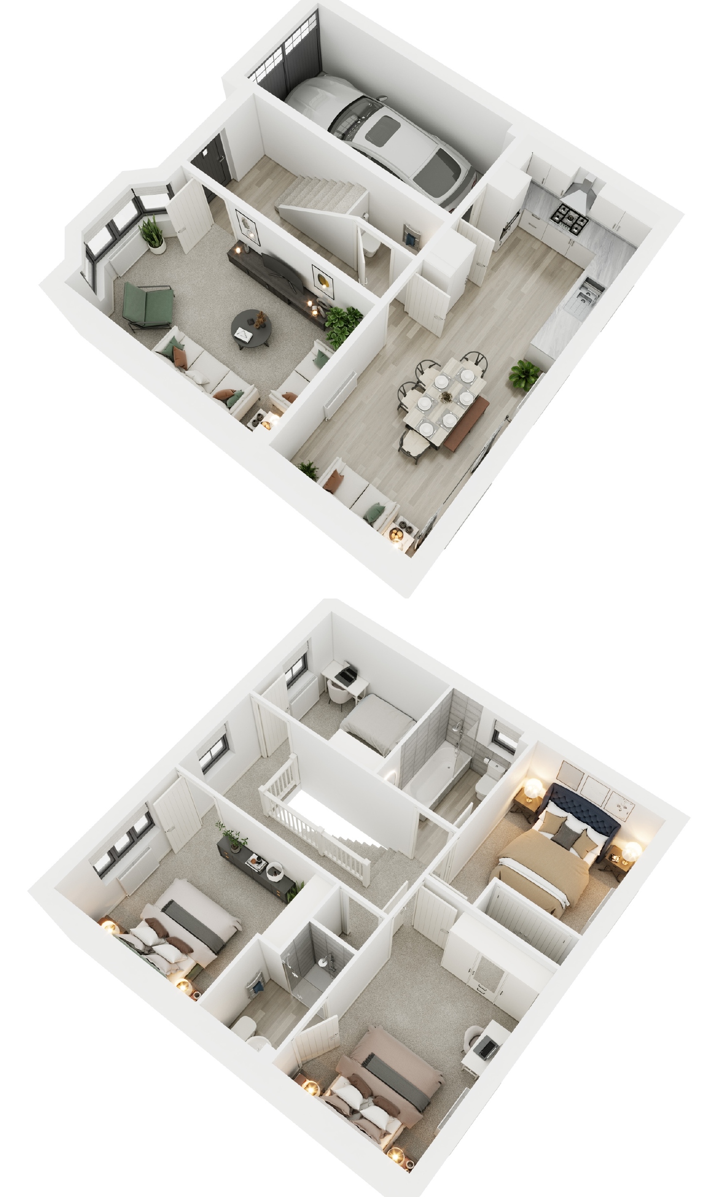 Upstairs you will find 4 spacious bedrooms all with ample space to keep everything organised,as well as a family bathroom and an an en-suite connected to the master bedroom. If you're looking to work from home, one of the bedrooms could comfortably double up as a home office so you won't have to sacrifice any of your living space. The Duke offers the perfect blend of style and functionality making it a perfect family home or a great option for those who want the extra space.