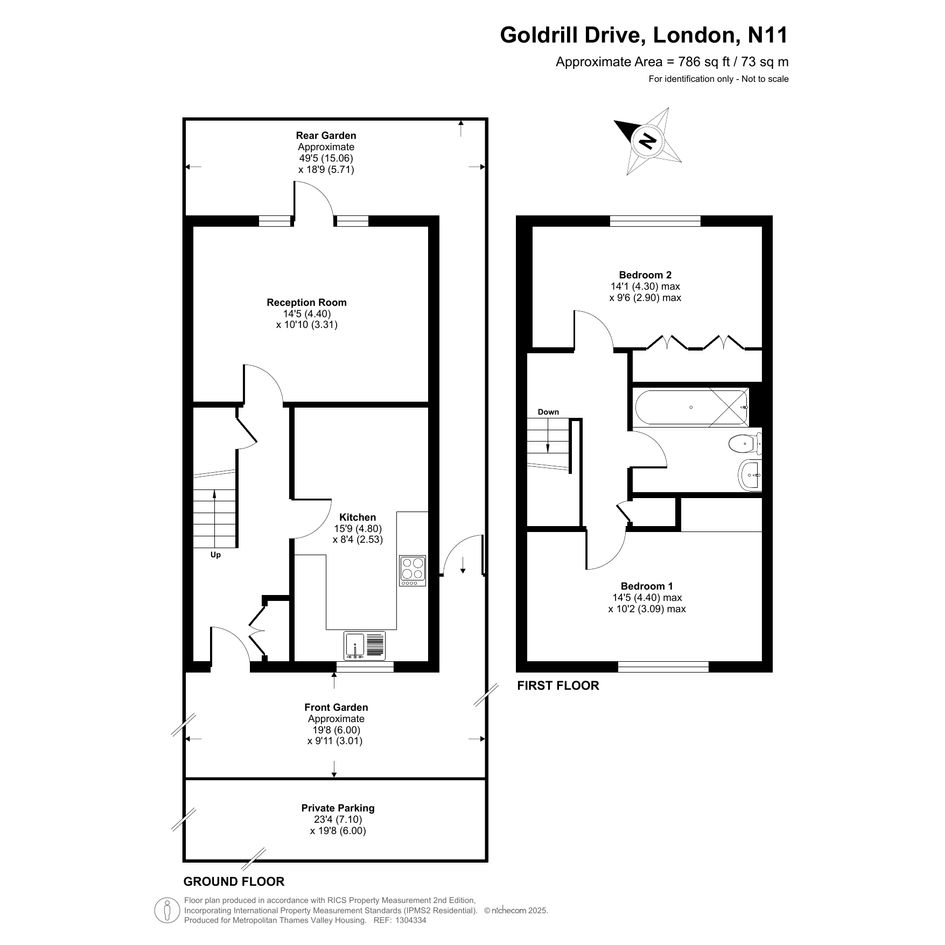 There's a small rear garden and two allocated driveways up front, with also a secondary entrance through the garden