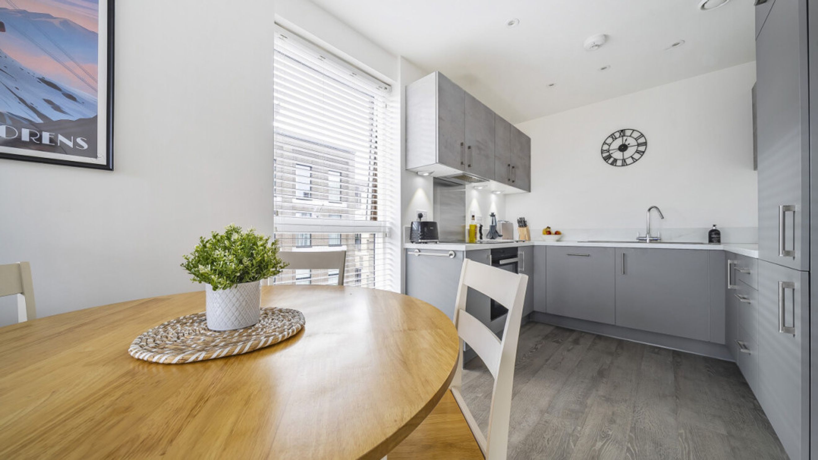 Enter this well presented apartment via a spacious hallway with large storage cupboard housing plumbing for your washing machine. The dual aspect open plan living area features a modern grey kitchen with fully integrated appliances and opens onto a private balcony with views across the manicured communal gardens. A good sized double bedroom and contemporary family bathroom complete the accommodation.