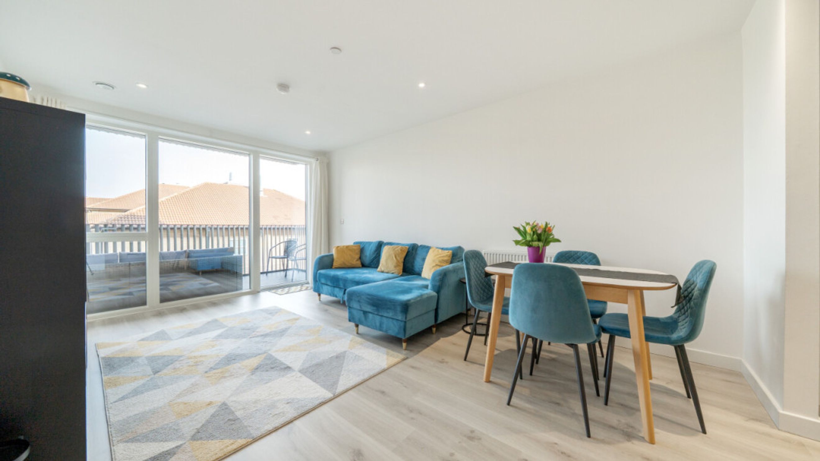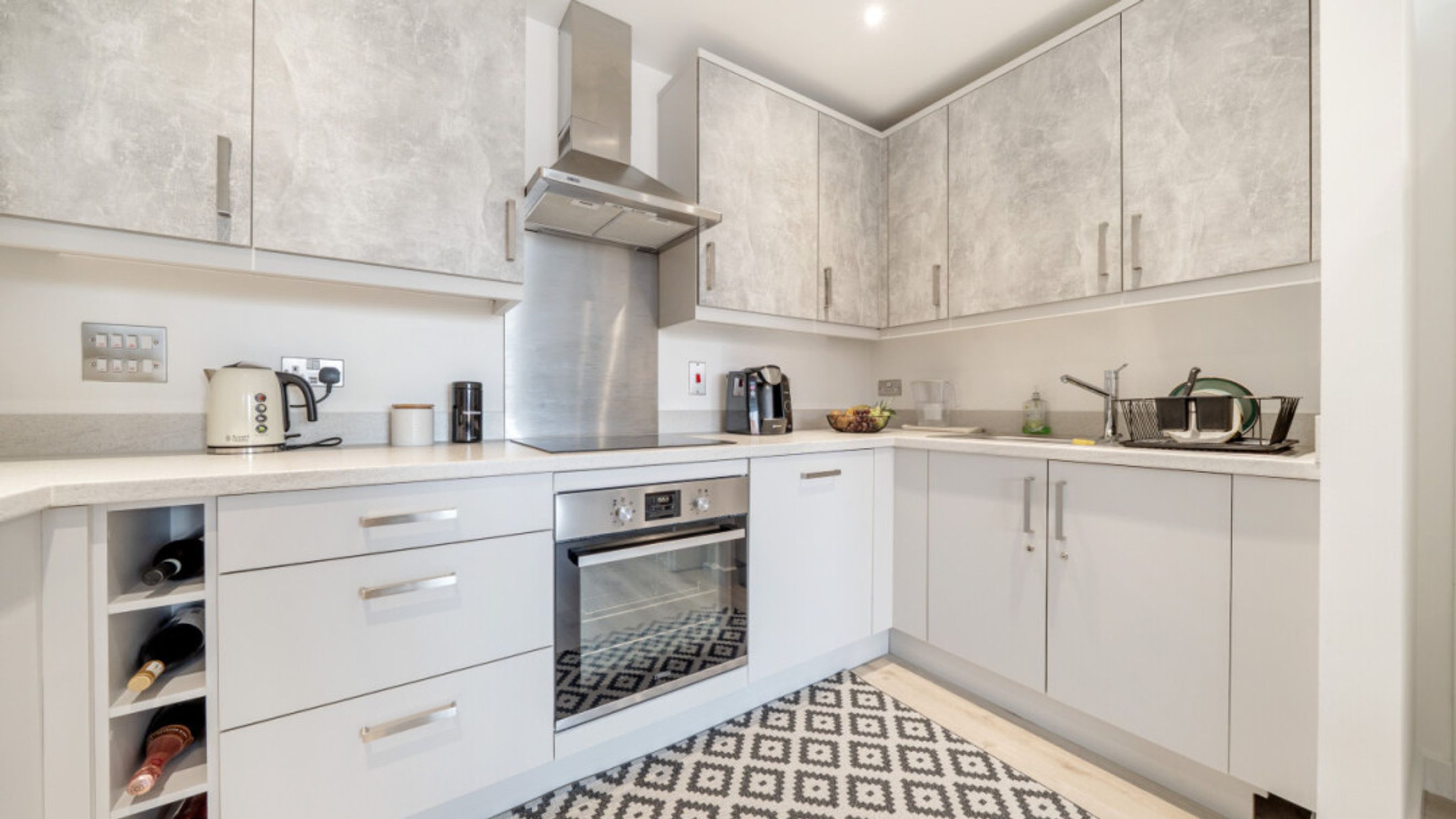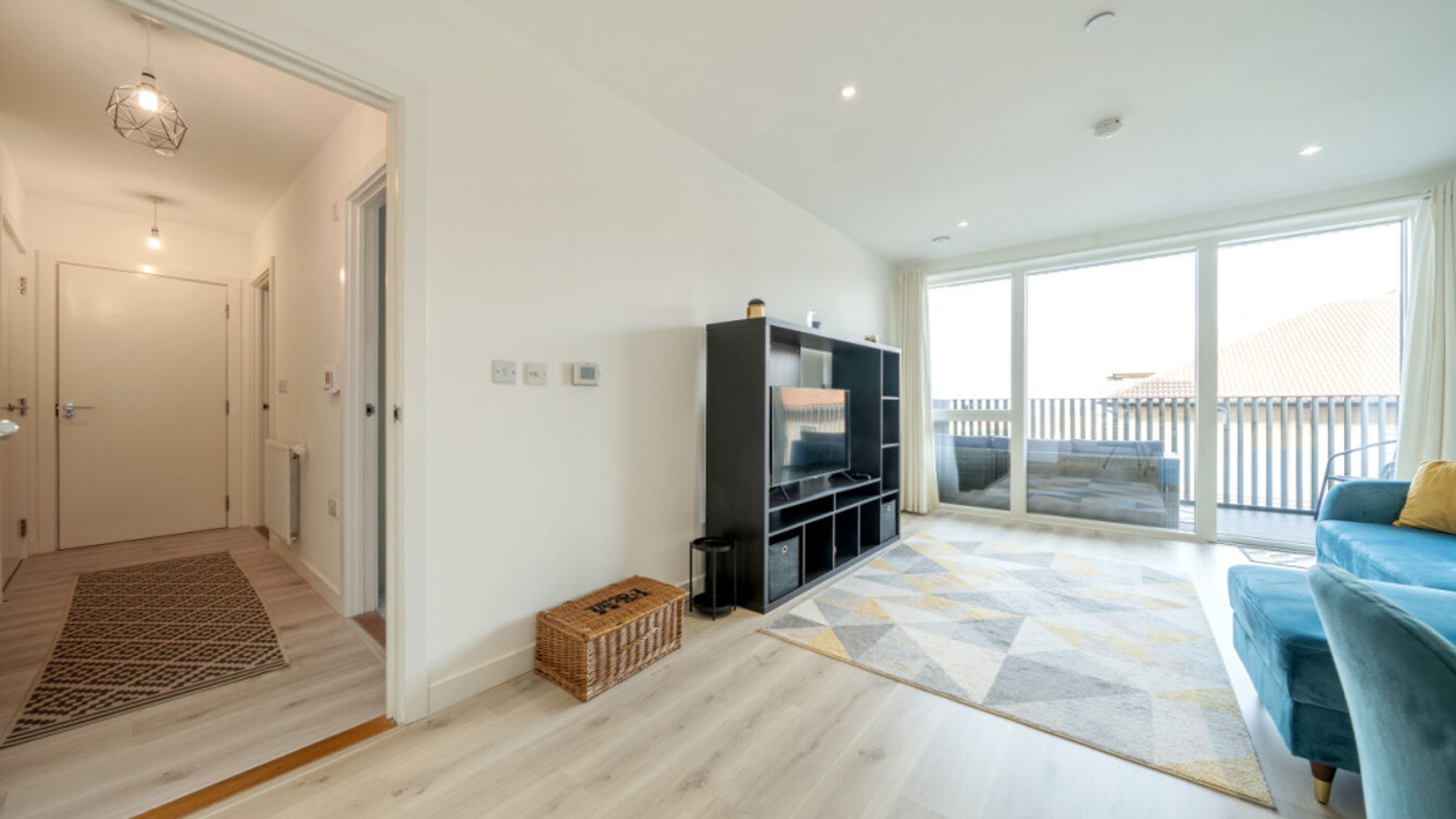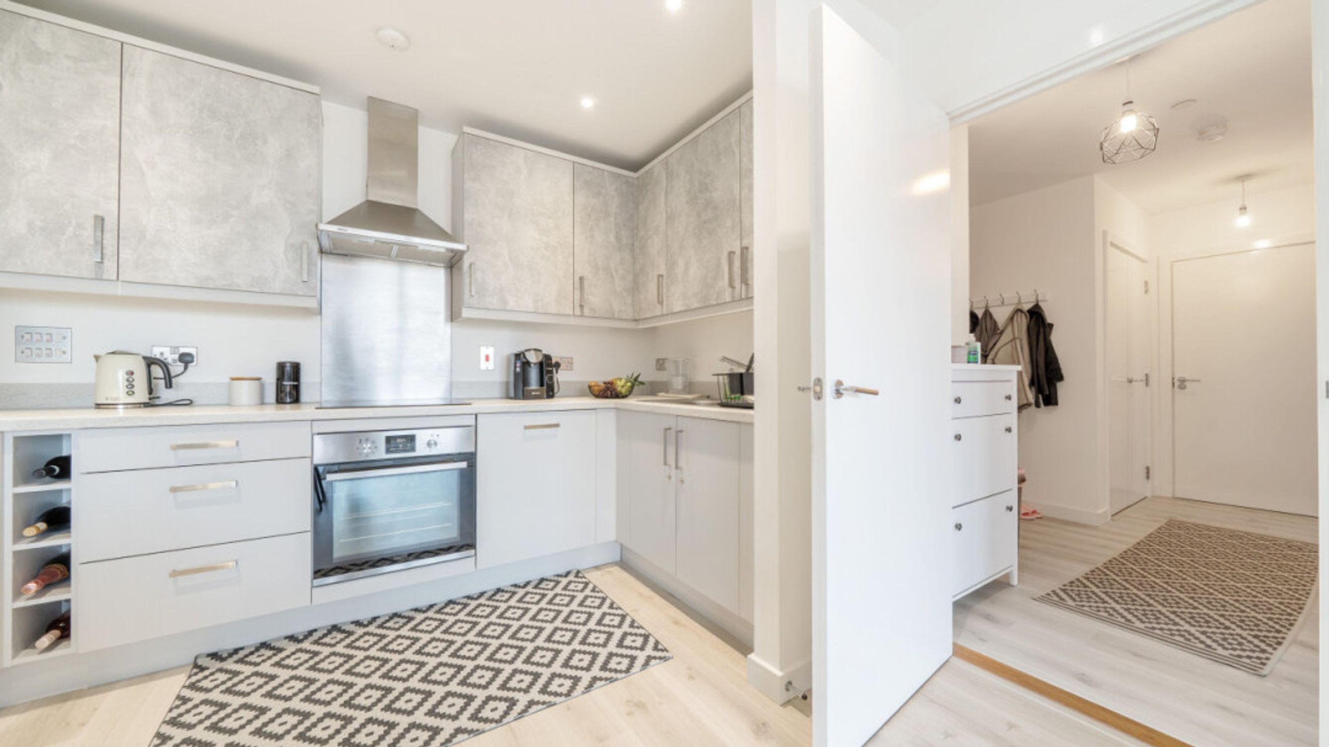 Enter this spacious apartment via an entrance hall with two useful storage cupboards. To your right find the open plan living area, which opens onto a private balcony. The modern high gloss kitchen incorporates integrated appliances. There are two generous double bedrooms, one having benefit of a mirrored wardrobe. A contemporary bathroom completes the accommodation.