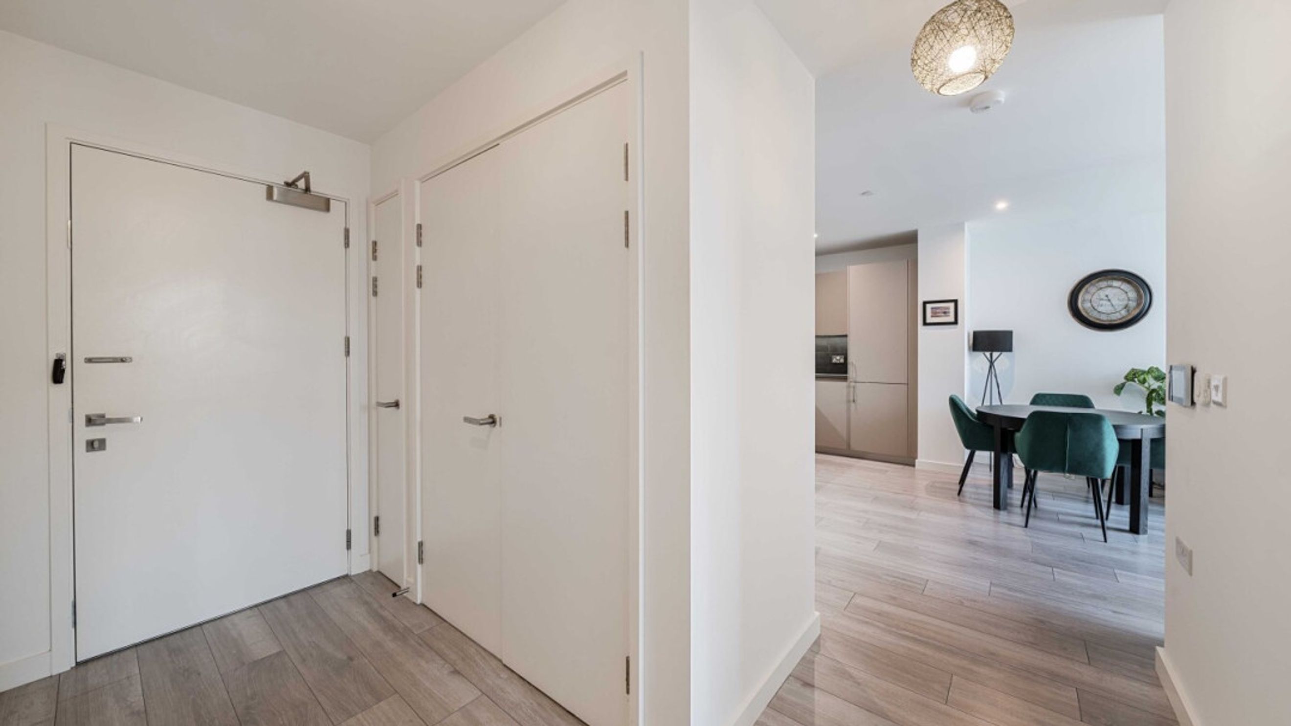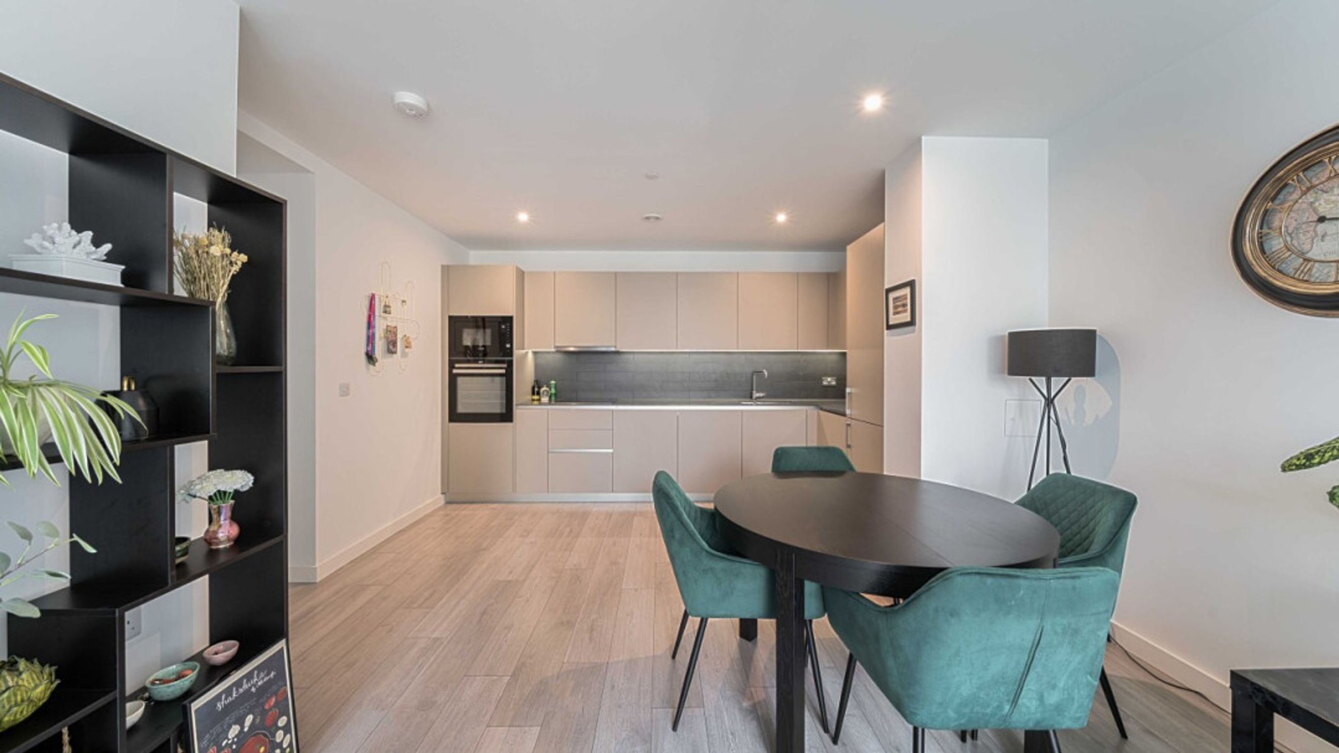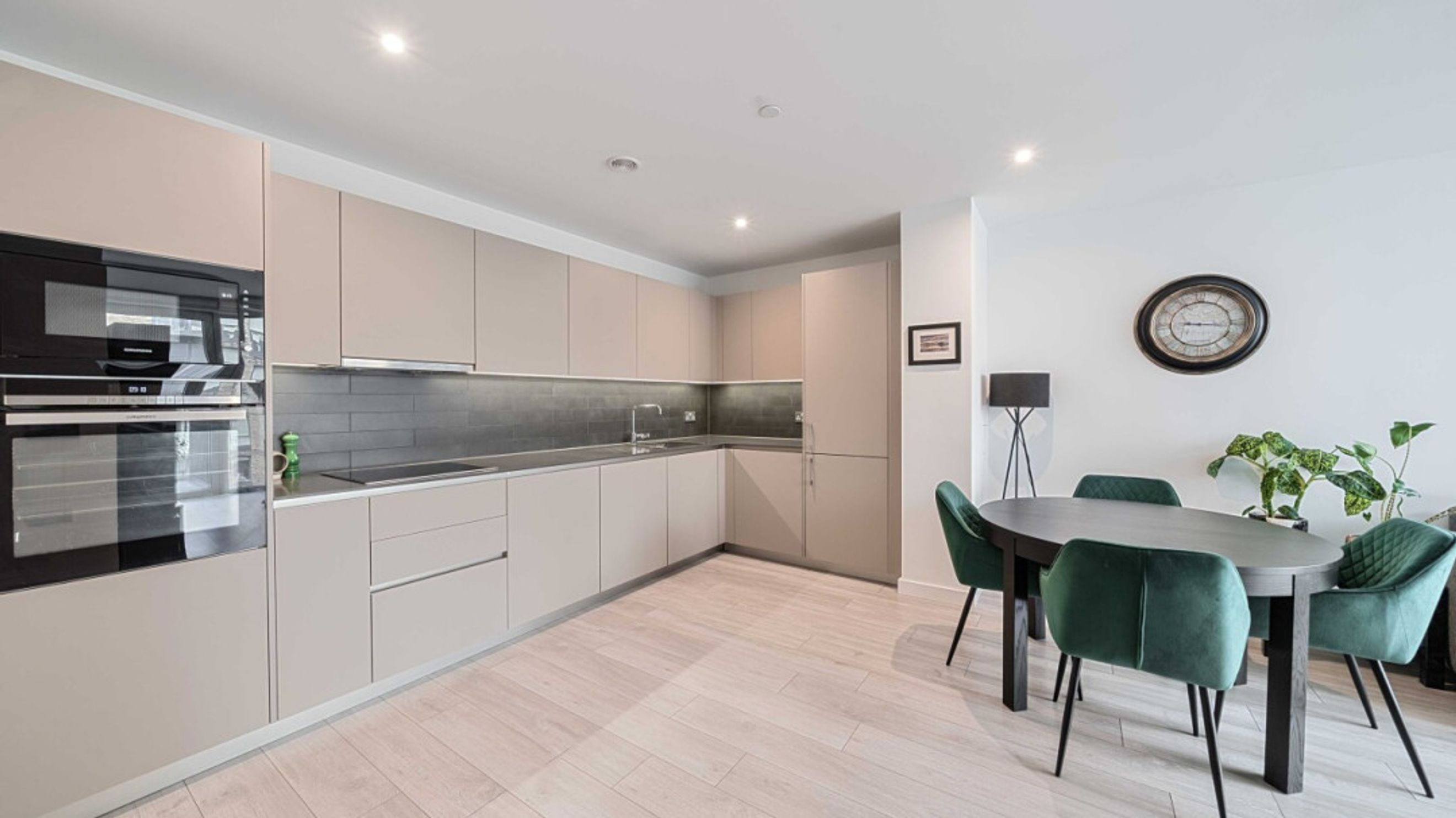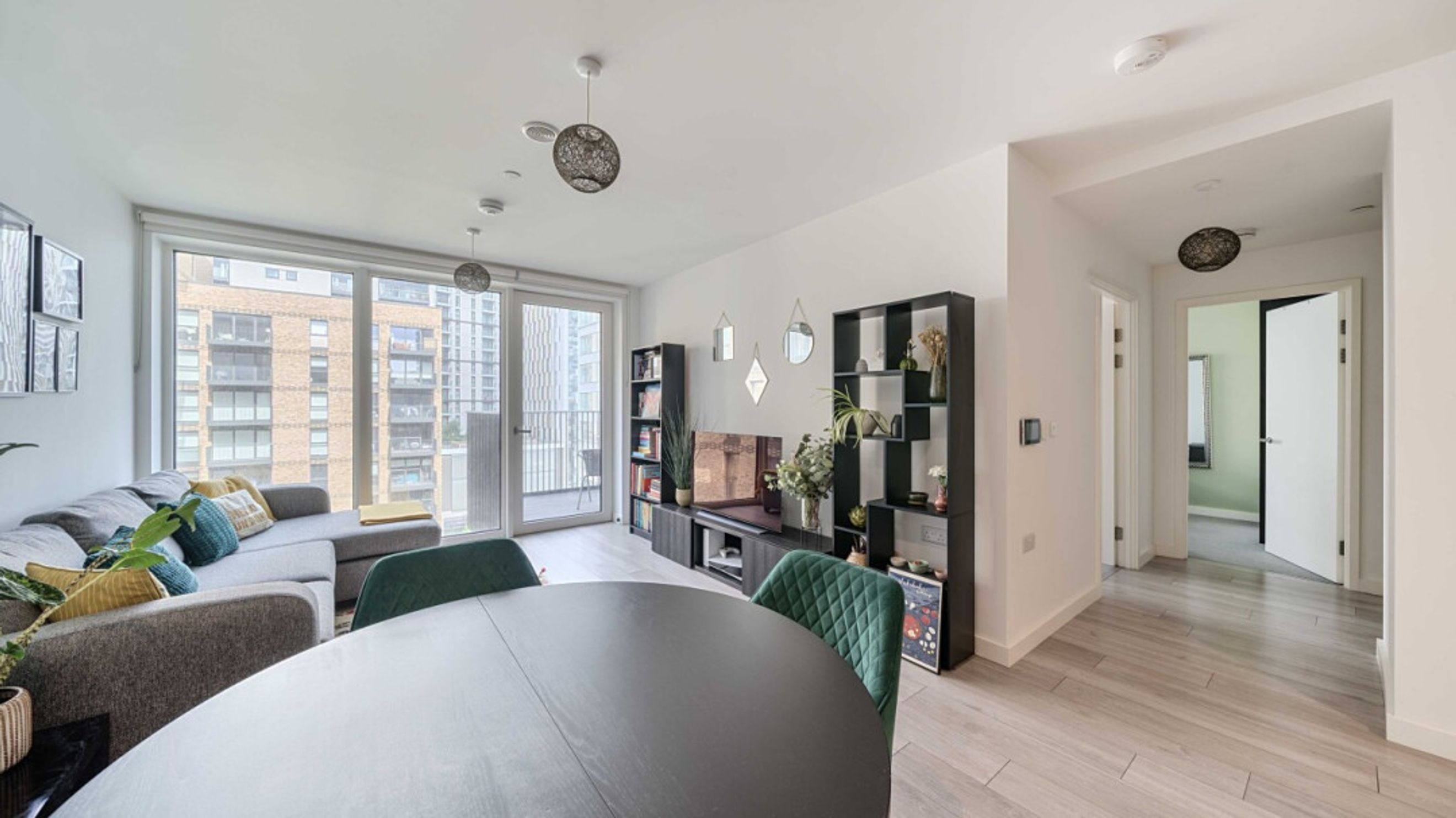 Enter this well presented two bedroom apartment via a spacious hallway, which leads into the open plan kitchen and living area, flooded with natural light from wide floor-length windows and door to a west facing private balcony overlooking the communal gardens. The kitchen is fitted with modern matt units and stylish worktops and features integrated appliances including a fridge freezer, oven, hob and extractor fan. There are two double bedrooms, and a contemporary family bathroom with a white three-piece suite with a shower over bath, completes the accommodation.