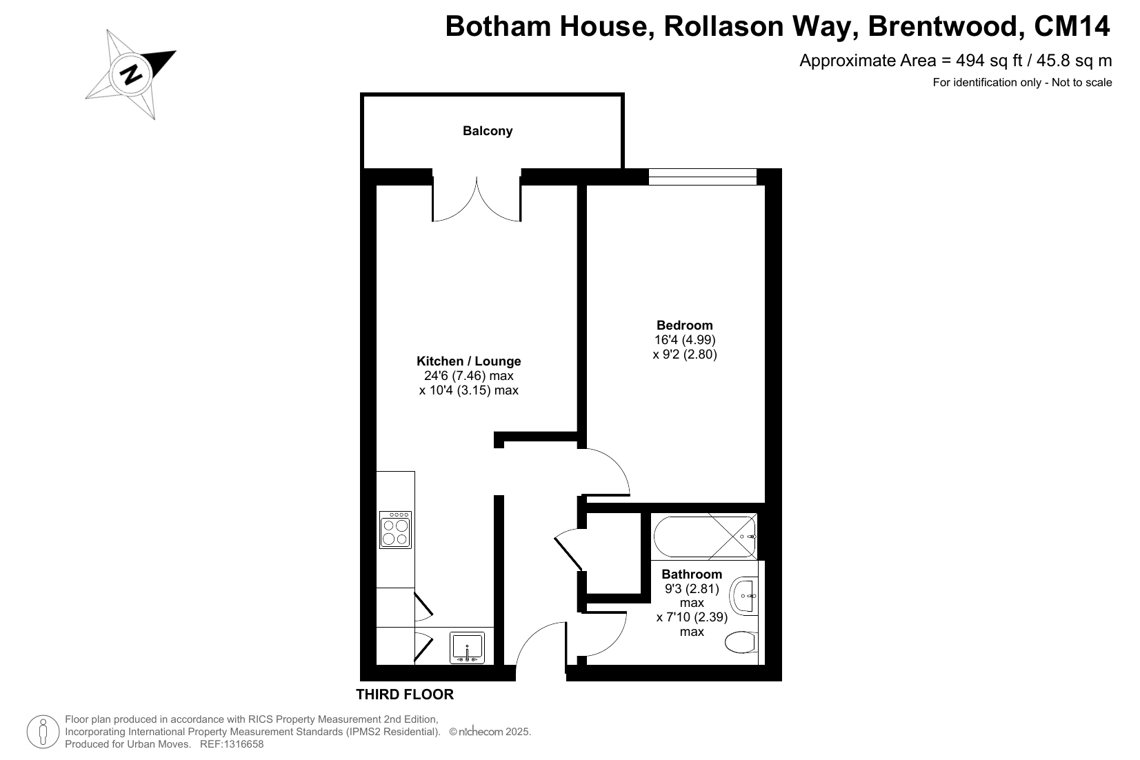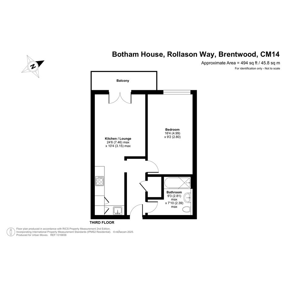 This smartly-presented flat is on the third (top) floor and has a twenty-four-foot reception room with open-plan kitchen area featuring attractive units and integrated appliances. Double doors lead out onto the balcony. There is a spacious bedroom and a stylish bathroom. Well insulated walls and roof, modern double glazing and gas central heating make for a good energy-efficiency rating. The development has communal parking and is just minutes from Brentwood Station which provides a frequent Elizabeth Line service through central London. Brentwood High Street is also within easy walking distance.