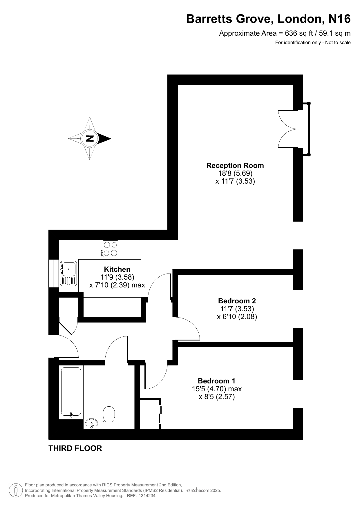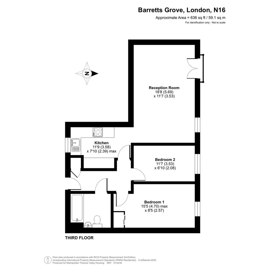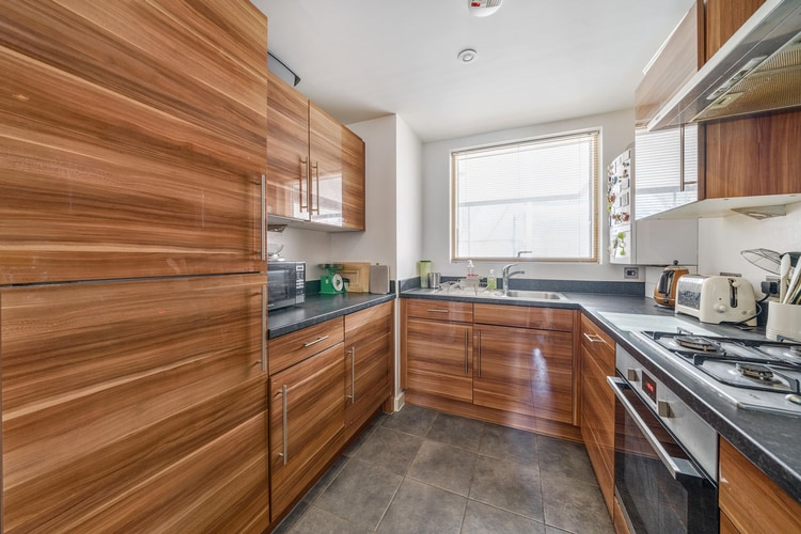 The property is on the third floor and comprises a spacious living room with space for a dining area, a fitted modern kitchen, two large bedrooms and a bathroom.