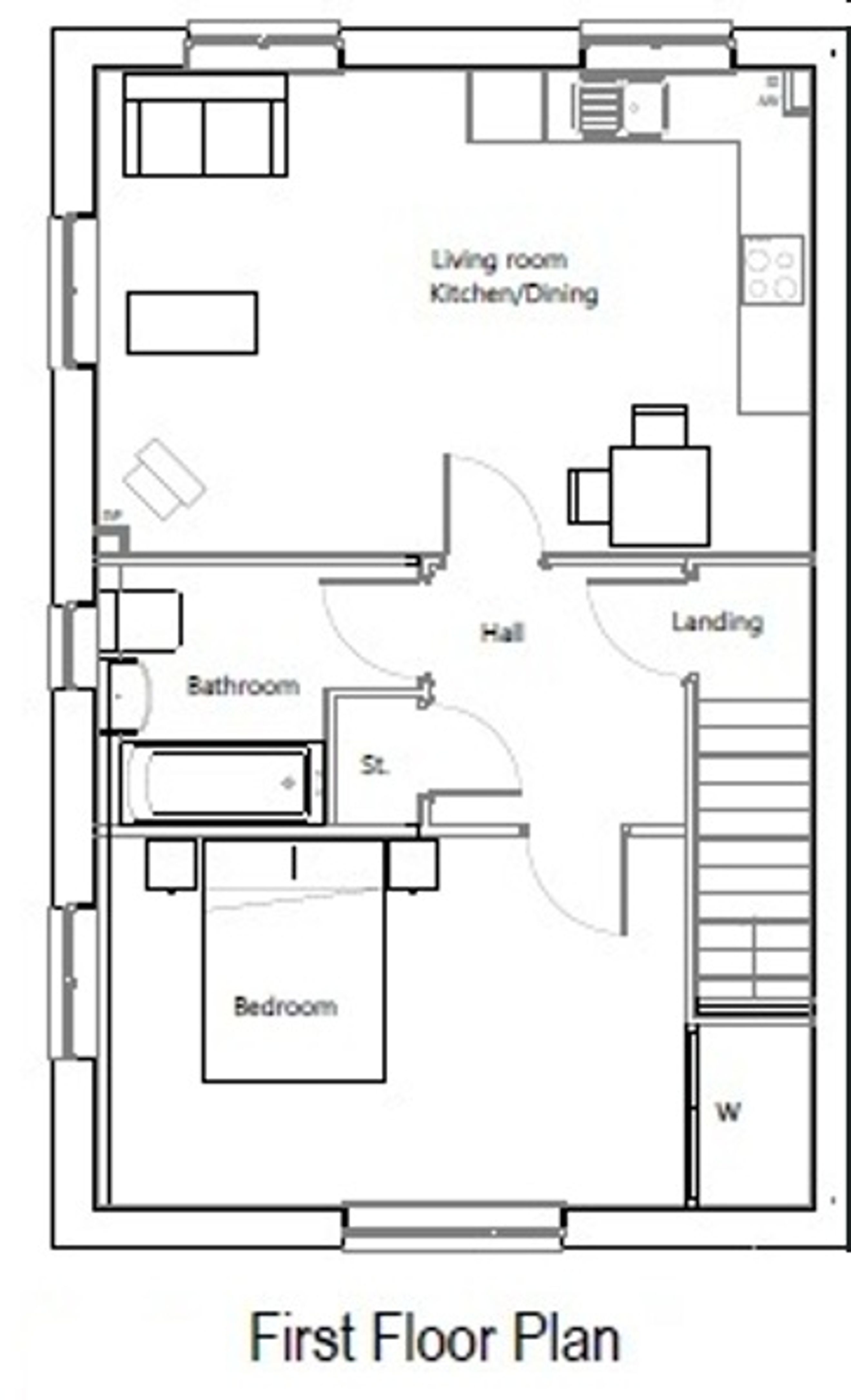 With its own front entrance leading you up the stairs into the hallway, separating all rooms, large double bedroom, bathroom and open-plan living area. Outside the property benefits from it's own private garden with shed.
