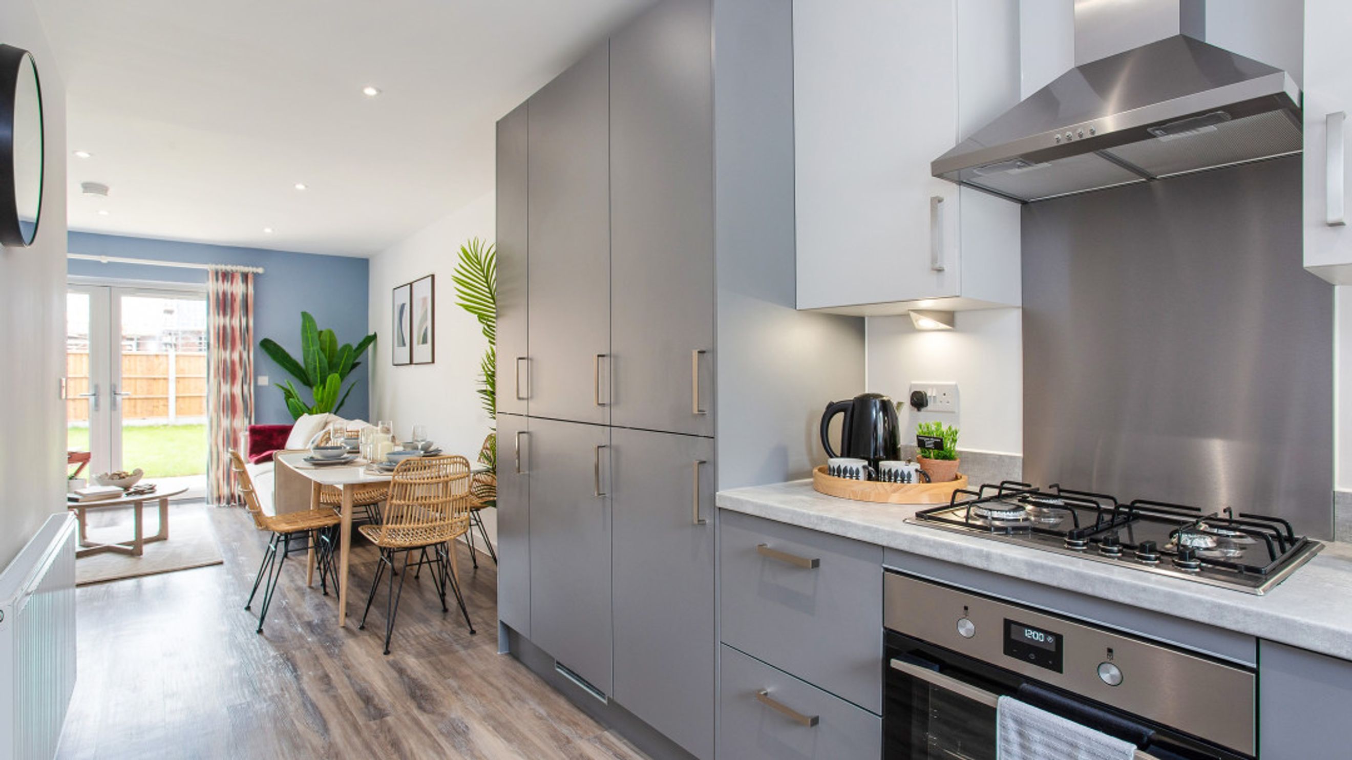 A stylish collection of 1 & 2 bedroom apartments, 2 bedroom coach house and 2 & 3 bedroom houses. A beautiful new locality with brand new school, community facilities, shops and open spaces. 3-bedroom family homes span three floors, offering ample living space. The ground floor features an open-plan kitchen and dining area, alongside a spacious lounge with garden access. The first floor hosts two bedrooms, and a modern family bathroom. The entire second floor is dedicated to the main bedroom with a dressing area, providing a private retreat. 2-bed cottages present an open-plan kitchen and dining space, a spacious lounge with French doors opening to the garden, and a contemporary family bathroom. Crafted to a high standard, these homes are tailored for a modern lifestyle. Spacious 1 bedroom apartments, each with a private balcony. The bright, airy open-plan kitchen, lounge, and dining area, featuring doors to the balcony, create the ideal space for hosting and entertaining.