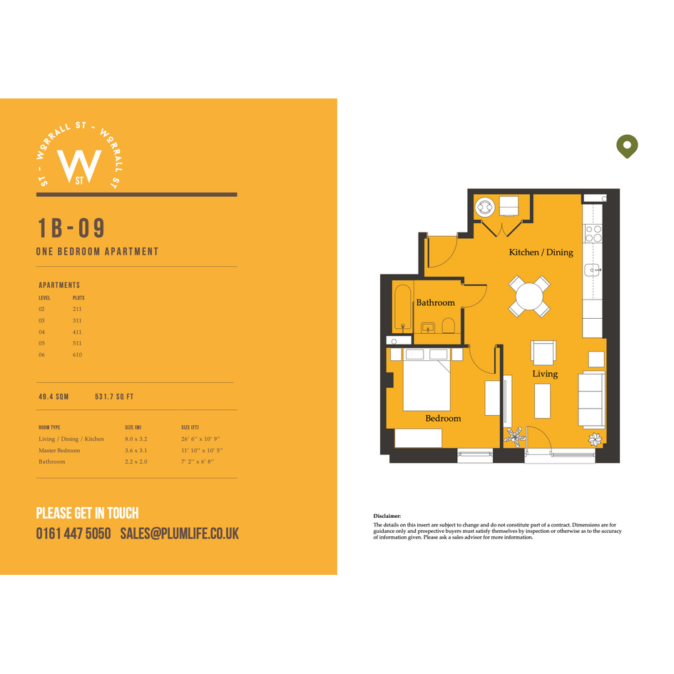 This one bedroom apartment at Worrall Street features an open plan living and kitchen/dining area with plenty of kitchen surface space, as well as handy storage. You’ll also find a good sized bedroom and bathroom.