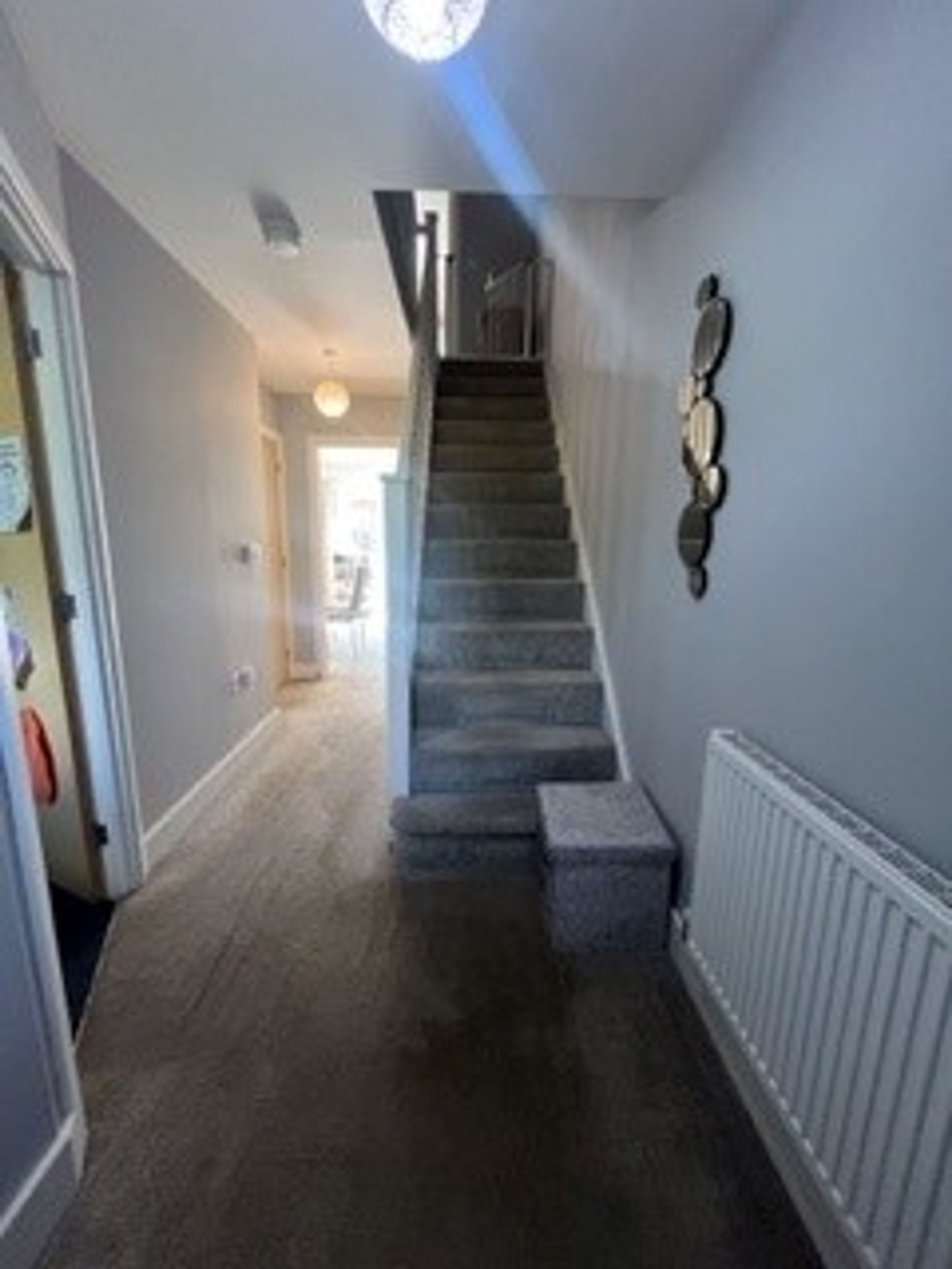 It comprises of an entrance hall; fully fitted kitchen; downstairs cloakroom and lounge/dinner with patio doors to the rear private garden; upstairs, the landing leads to a family bathroom and two double-bedrooms.
