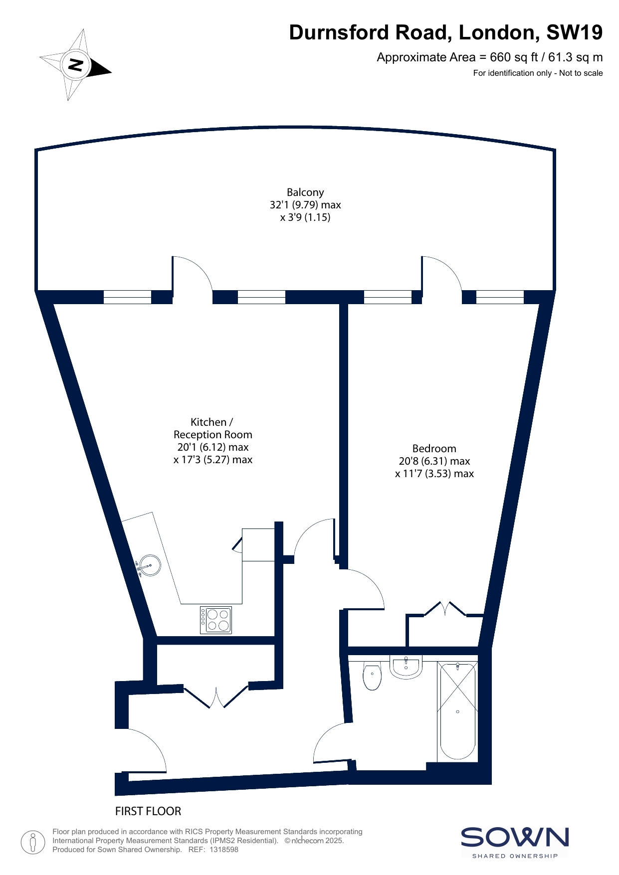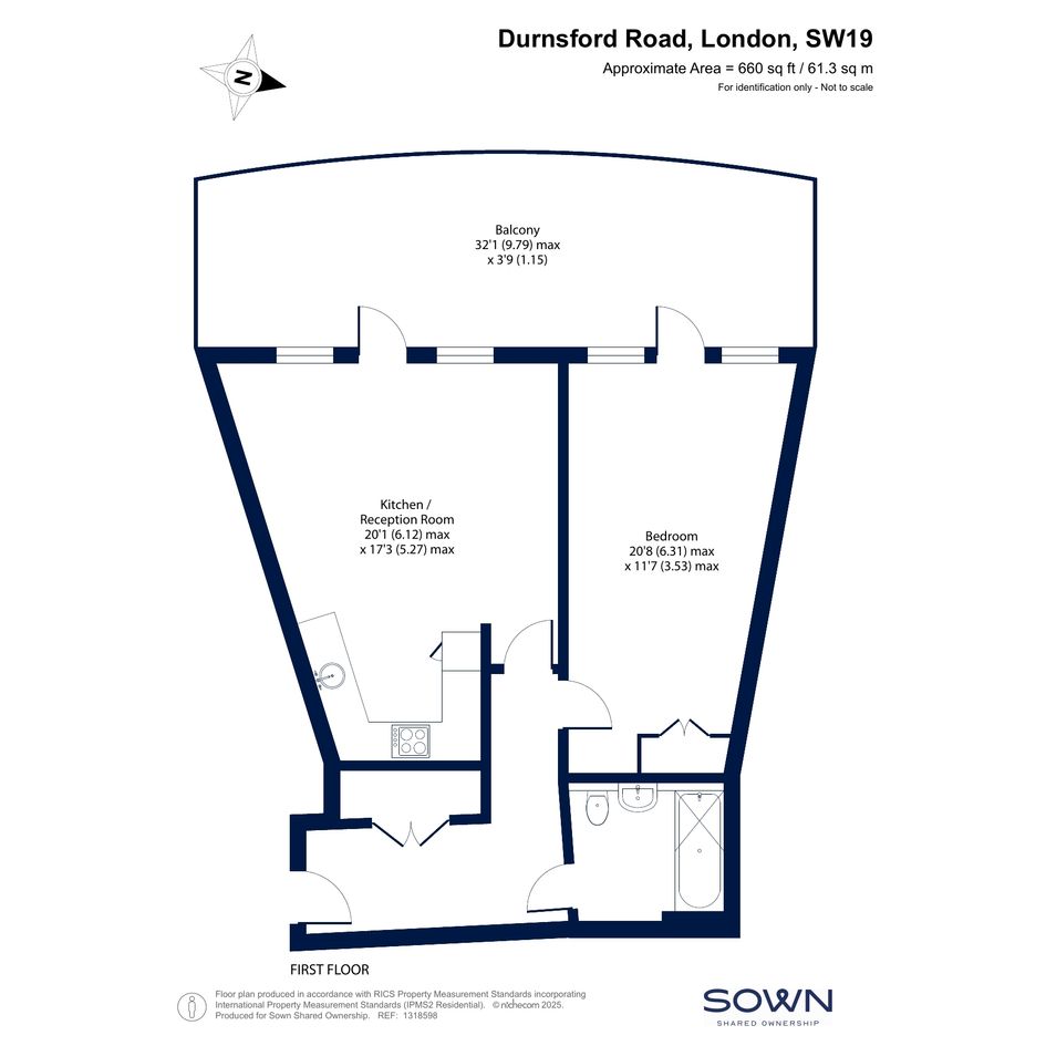 A well appointed first floor apartment providing light and spacious accommodation measuring over 61 sq ft. The modern, open plan kitchen/living space provides ample space and flexibility. There is a very large double bedroom and a spacious bathroom. A private balcony can be accessed from the living space and the bedroom.