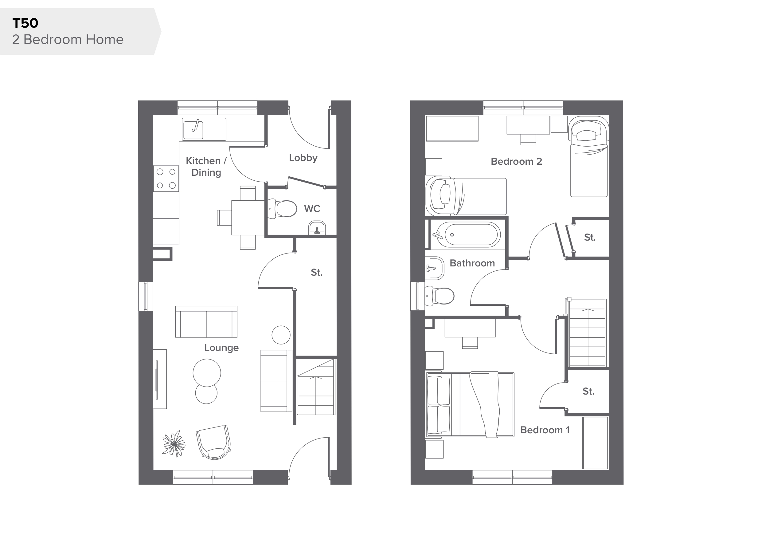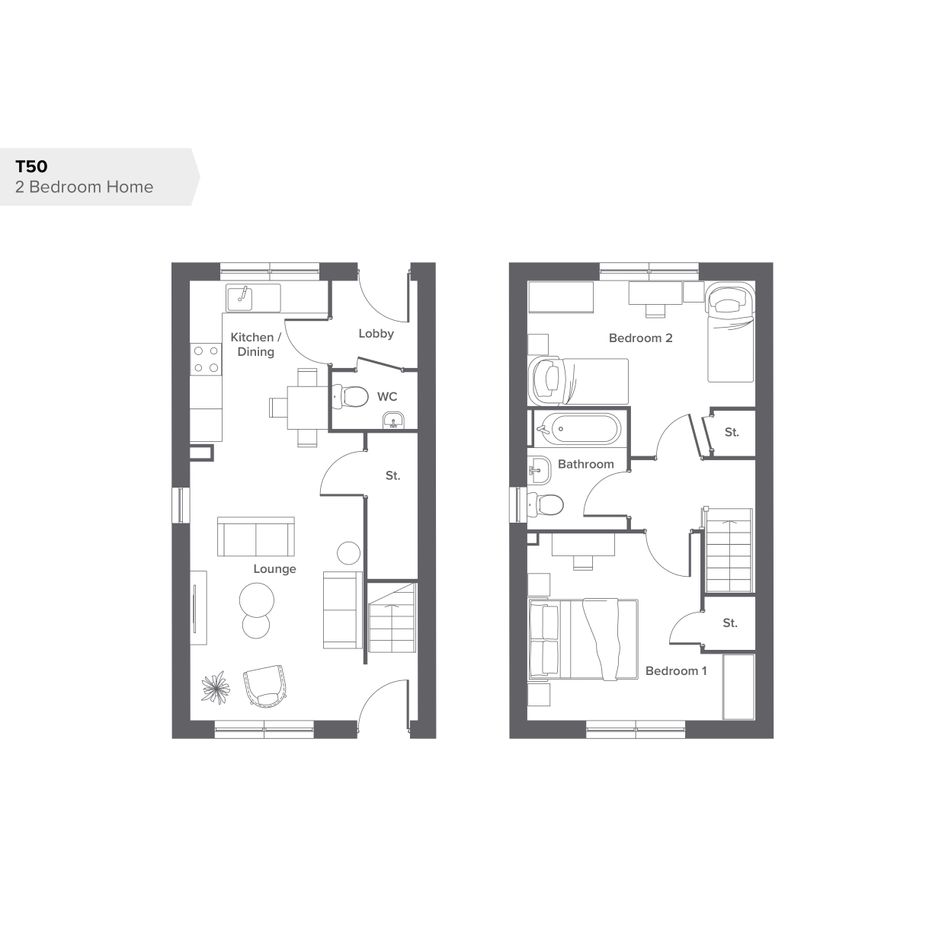 Welcome to The Oakmoor, where a spacious lounge provides the perfect place to unwind, while the separate kitchen/ diner offers a generous space for cooking, dining and spending time with family. A convenient downstairs toilet adds extra practicality to the ground floor. Upstairs, you'll find tow well-sized bedrooms, both featuring built-in storage to help keep things tidy and organised. A stylish family bathroom completes the upper floor. Thoughtfully designed for modern living, this home provides the perfect blend of comfort, function and space.