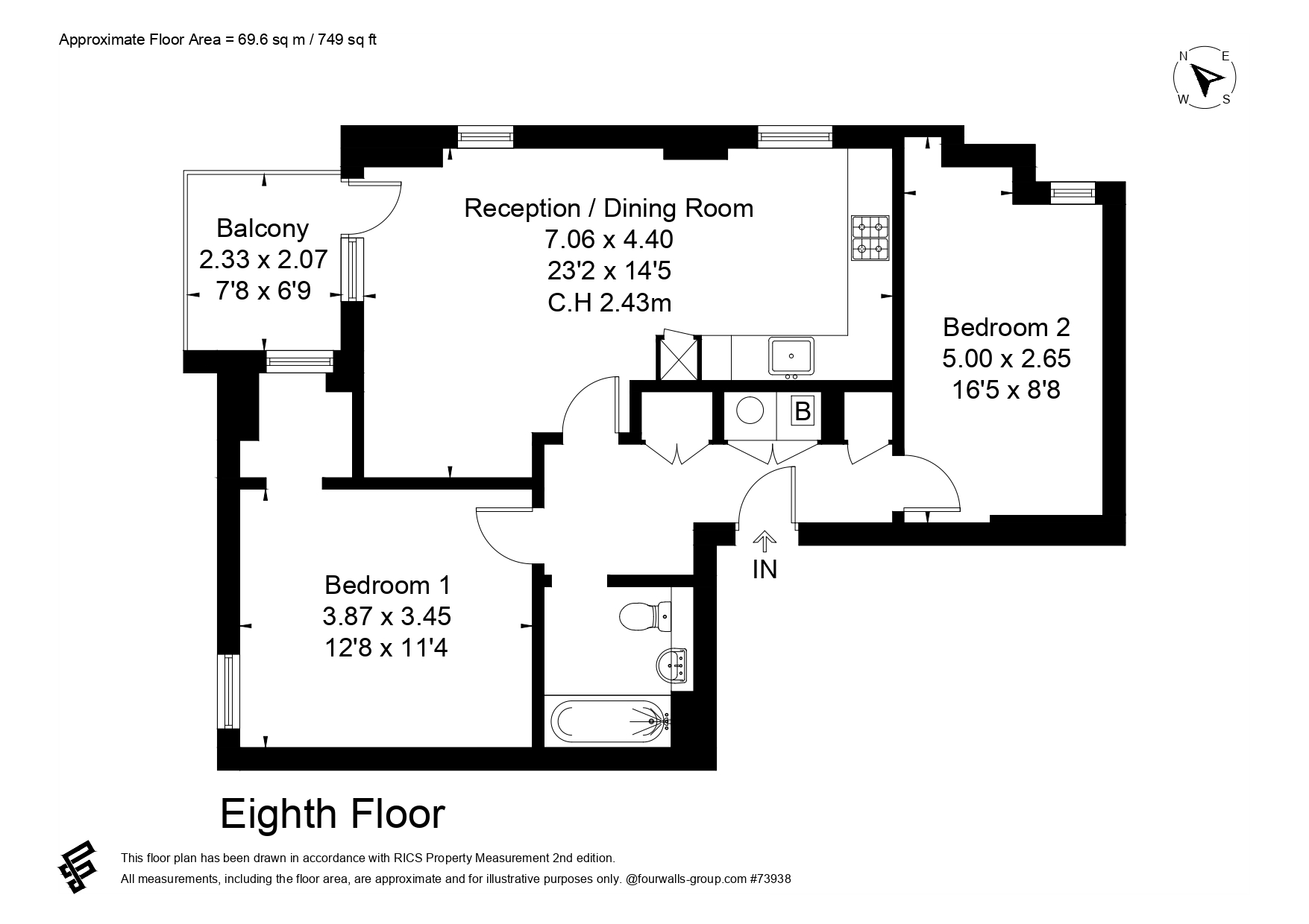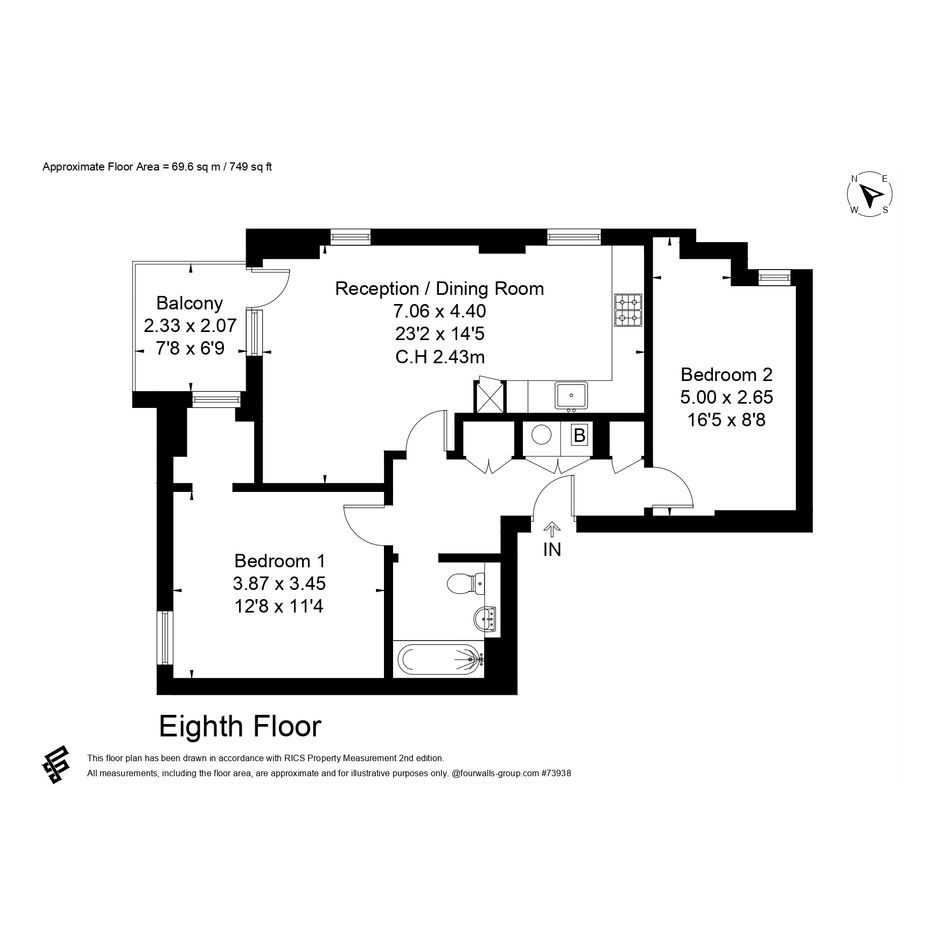 Next up are the bedrooms, the first being the master. This is a large double bedroom with a walk in wardrobe space that also provides lots of natural light thanks to it's view out to the balcony. There is plenty of space for all your bedroom furniture needs.