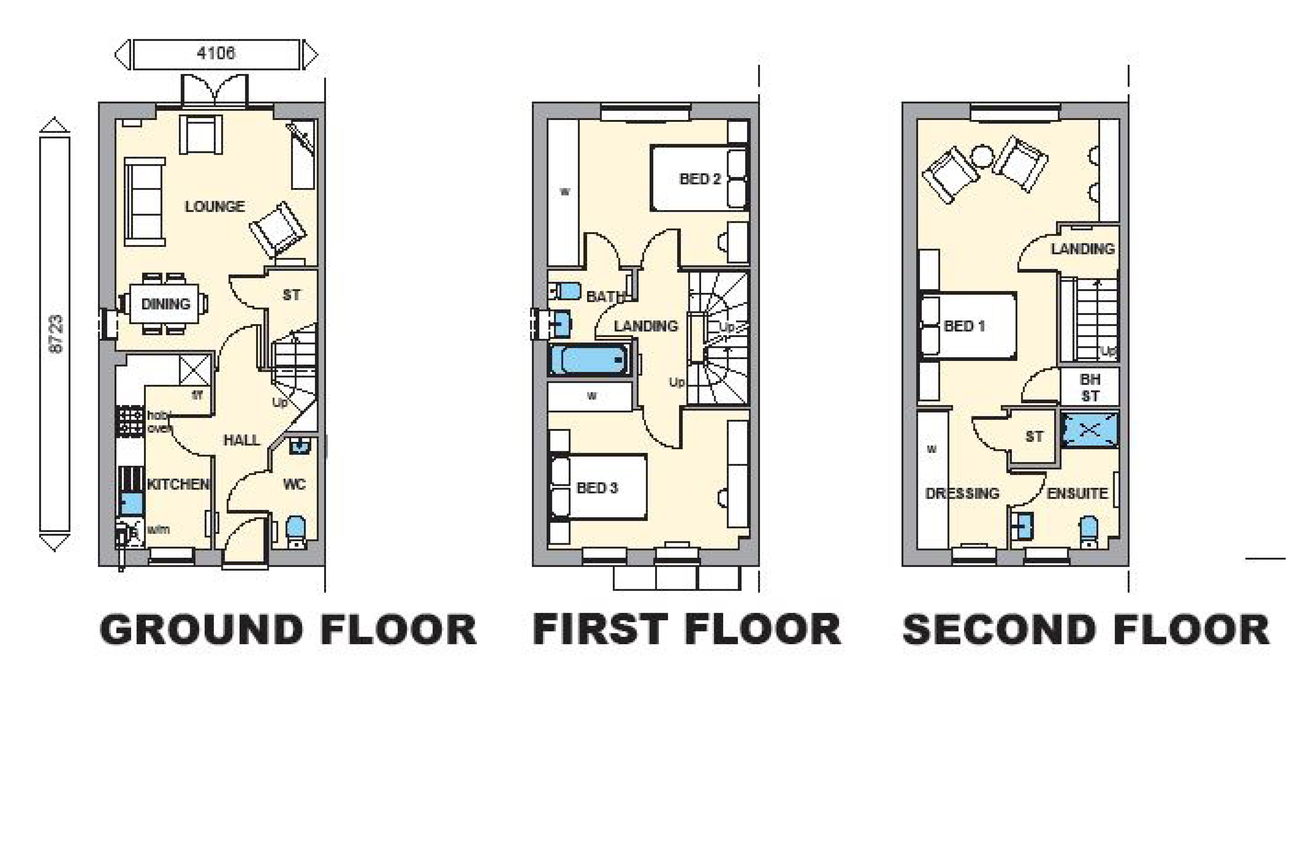 These stunning 3 bedroom 3 storey semi-detached/mews homes are constructed to the highest specifications. This house type puts families at the heart of these homes, they have a spacious lounge/dining room to the rear and modern fitted kitchen to the front with an integrated fridge/freezer, washer/dryer and dishwasher! And the French Doors to the garden flood the rooms with light.