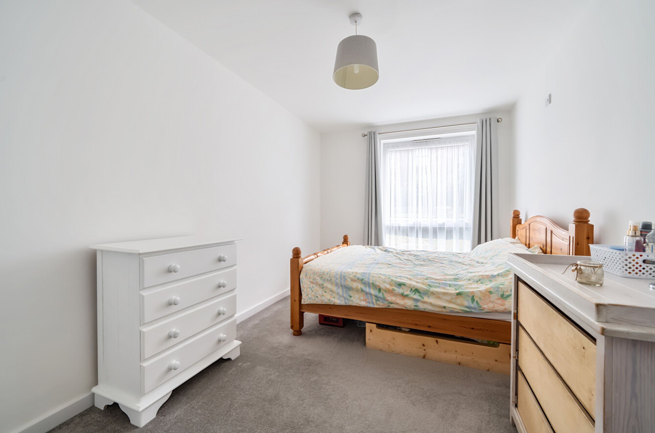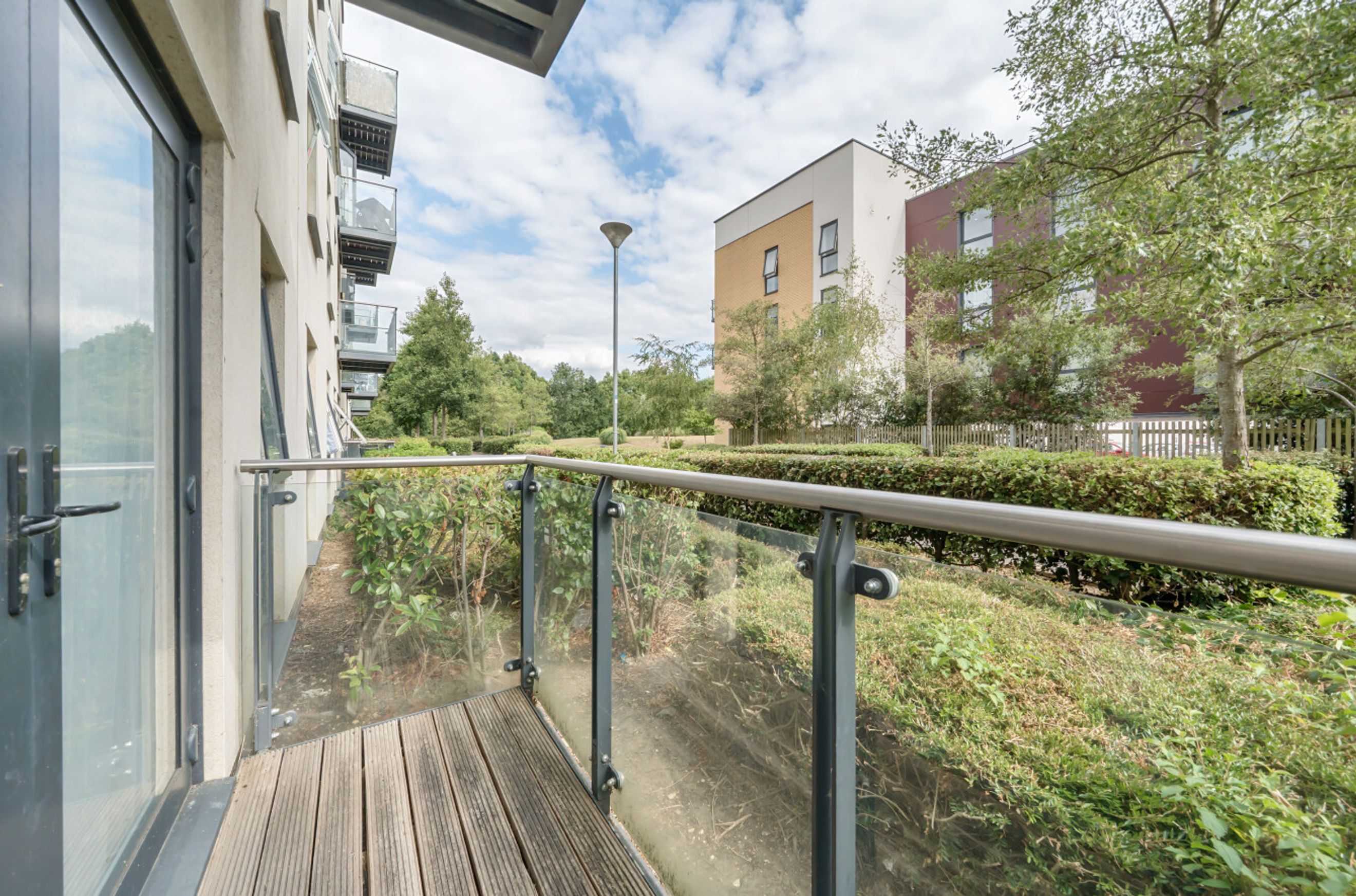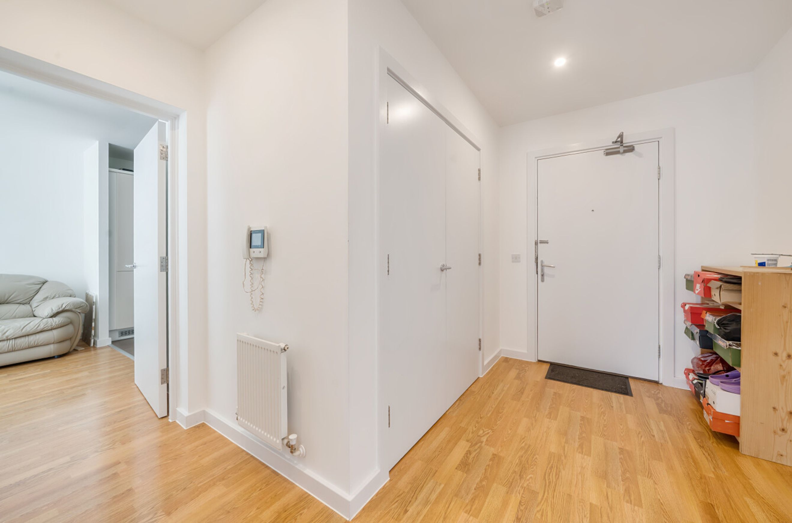 This modern, two-bedroom property is on the ground floor and has a reception room with wood flooring and south-facing balcony. The attractive, semi-open-plan kitchen features cream-coloured units with pencil-mosaic splashbacks. There is a spacious main bedroom with fitted wardrobe plus a second double bedroom, a good-sized bathroom and a large hallway storage/utility cupboard. Well insulated walls, double glazing and gas central heating make for a good energy-efficiency rating. Lyell House and the adjoining buildings share a large communal courtyard and bike store and a gated car park that includes a space for this flat. The wider development also has a communal garden. Enfield Lock Station, for services into Liverpool Street, is only a short walk away.