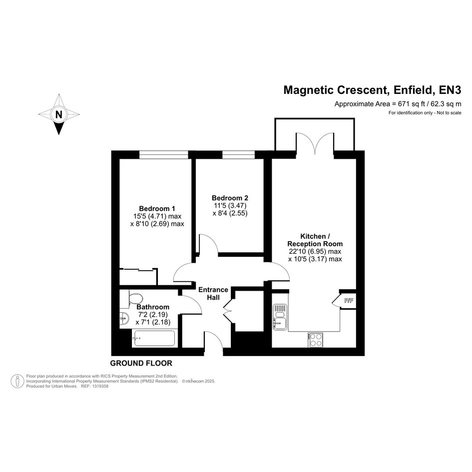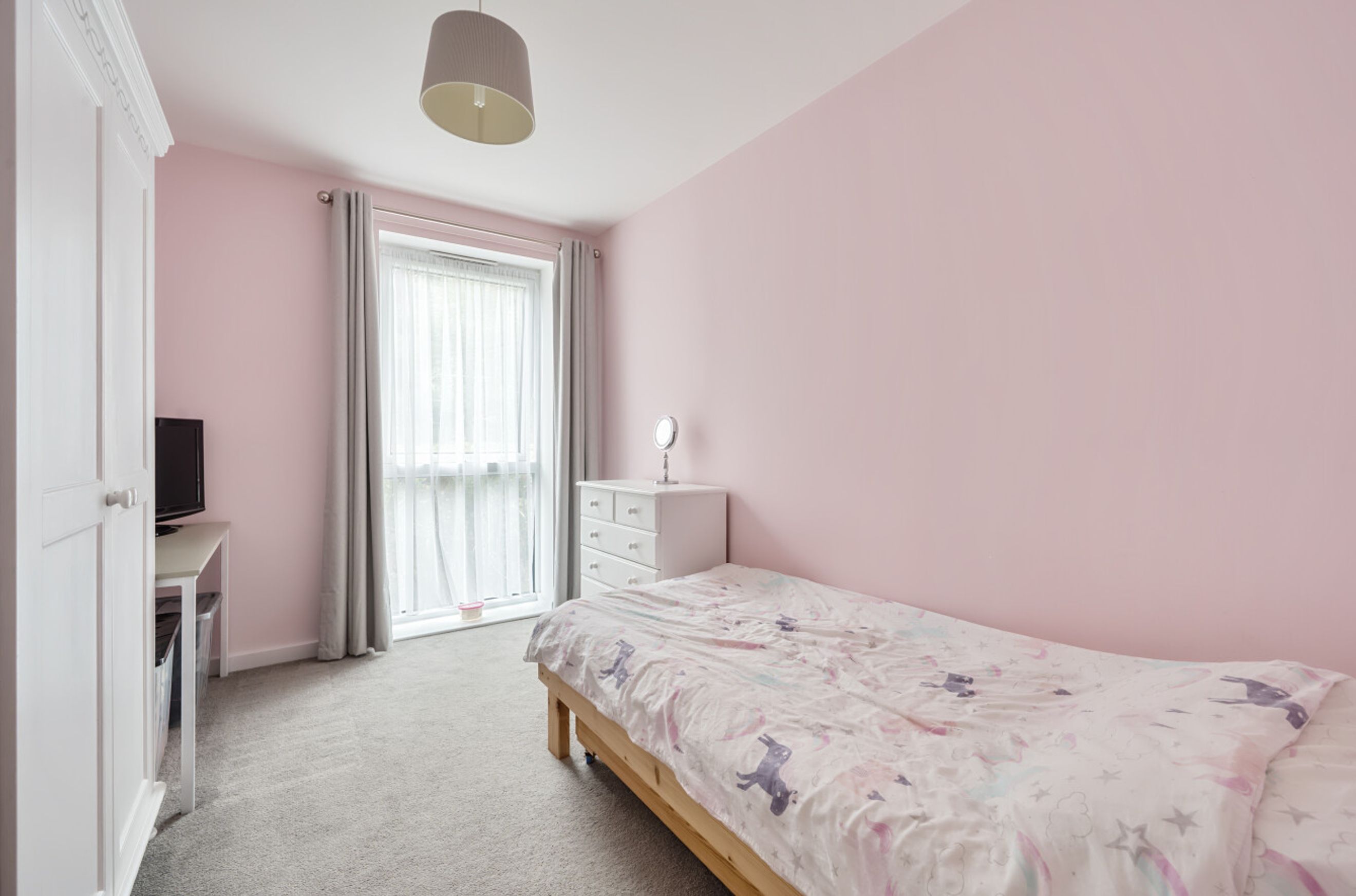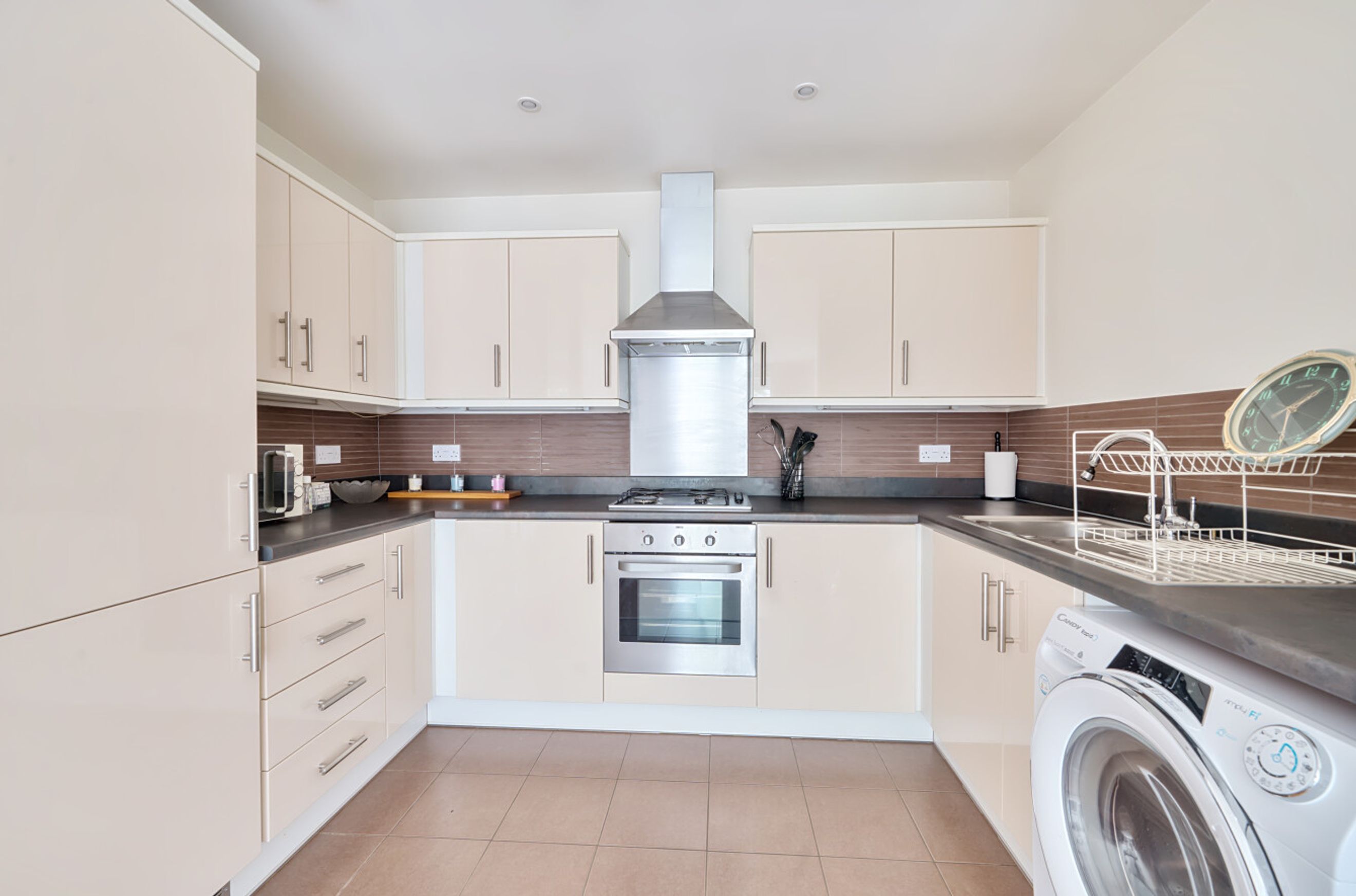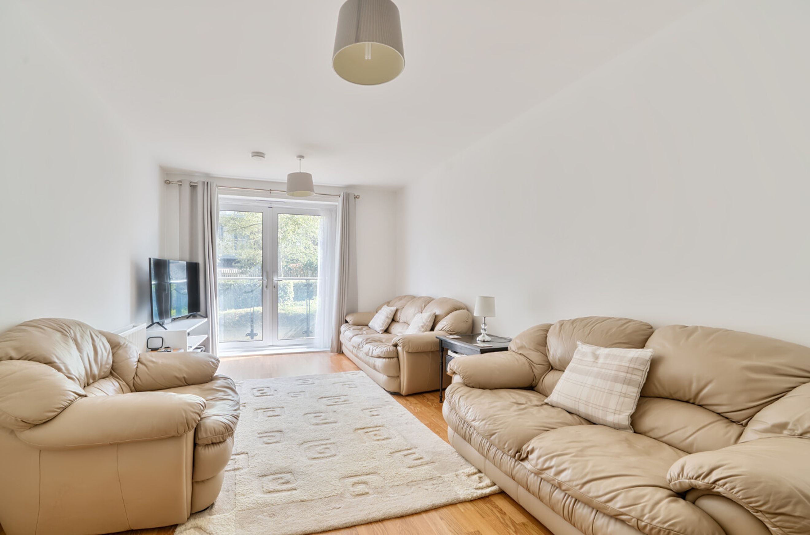 This modern, two-bedroom property is on the ground floor and has a reception room with wood flooring and south-facing balcony. The attractive, semi-open-plan kitchen features cream-coloured units with pencil-mosaic splashbacks. There is a spacious main bedroom with fitted wardrobe plus a second double bedroom, a good-sized bathroom and a large hallway storage/utility cupboard. Well insulated walls, double glazing and gas central heating make for a good energy-efficiency rating. Lyell House and the adjoining buildings share a large communal courtyard and bike store and a gated car park that includes a space for this flat. The wider development also has a communal garden. Enfield Lock Station, for services into Liverpool Street, is only a short walk away.