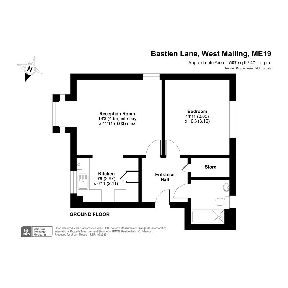 A well-proportioned and well-presented flat on the ground floor. The property is one of just four in the building and has a dual-aspect reception room, with bay window, and a semi-open-plan kitchen. There is a spacious bedroom, naturally-lit bathroom and useful storage cupboard in the entrance hallway. Well insulated walls, modern double glazing and gas central heating make for a good energy-efficiency rating. Bastien Lane has fields to the north but is still within comfortable walking distance of Kings Hill's various shops and amenities. The flat comes with use of an allocated parking space and West Malling Railway Station can also be reached via bus or bike.